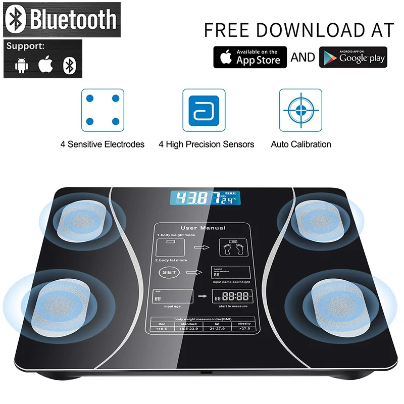 Bluetooth-весы для ванной, умные цифровые электронные весы с анализатором состава тела