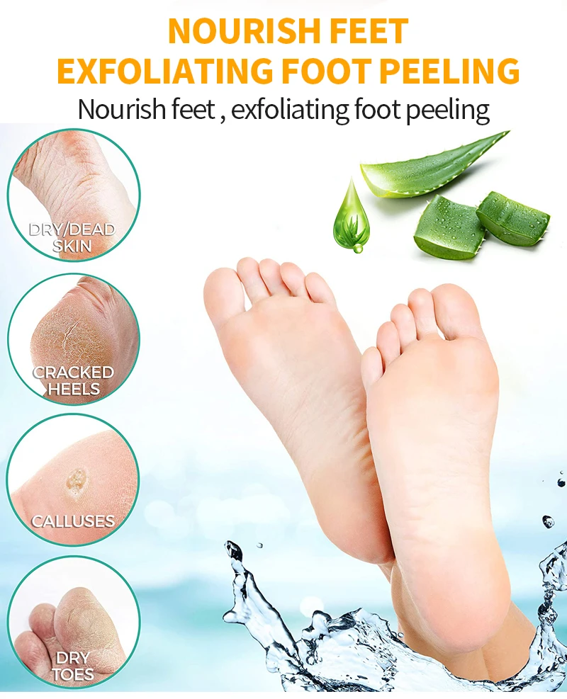 1. Вымойте и Замочите ноги горячей водой, а затем высушите ноги. 2. Используйте ножницы, чтобы вырезать Уплотнение Маски для ног посылка. 3. Носите маску для ног, мы рекомендуем носить пару нормальных носков снаружи, чтобы обеспечить достаточный контакт с эссенцией. 4. Снимите маску для ног через 35-95 минут, затем очистите ноги. 5. Большинство людей начинают очищать омертвевшую кожу после 48 часов использования, но из-за различных типов кожи кому-то может потребоваться 2-3 пары, пожалуйста, используйте маску для ног снова 48 часов позже. 6. Не используйте маску, если у вас есть активный порез или ран. 7. Мы предлагаем вам замочить ноги горячей водой после 48 часов использования.