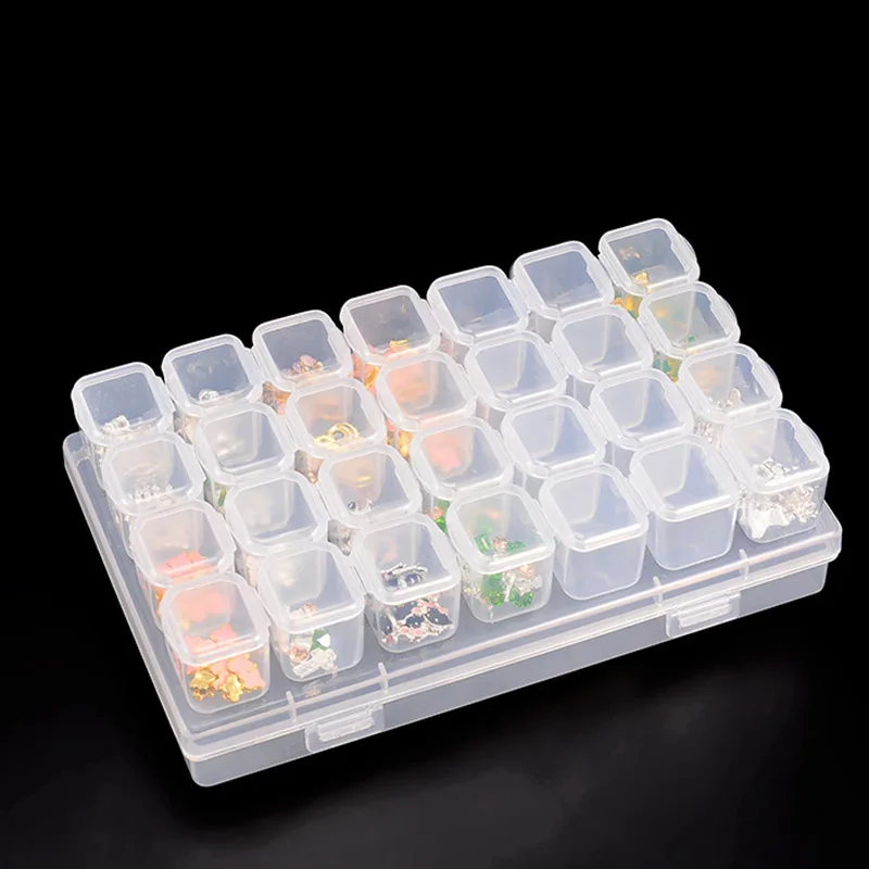 Органайзер с 28 съемными отделениями, прозрачная коробка с мини-ячейками и бриллиантами для хранения ювелирных изделий, таблеток, мелких вещей, бусин