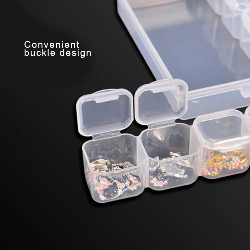 1. Изготовлен из высококачественного, прочного и долговечного материала.2. Гладкая поверхность без заусенцев.3. Прозрачный дизайн коробки, видимый, легко вынимать.4. Каждая маленькая ячейка имеет уникальный флип-чехол, магазин ювелирных изделий для ногтей не боится пропажи5. Идеально подходит для хранения и классификации макияжа, ювелирных изделий, бисера, ожерелья, кольца, подвески, пайетки, швейные принадлежности, украшения для вырезки и алмазной вышивки.