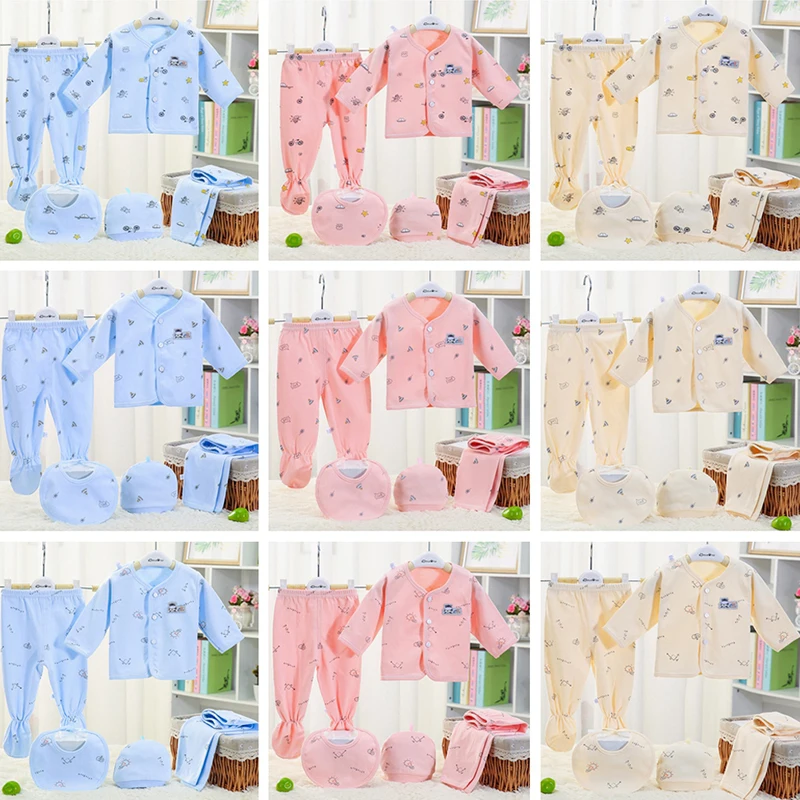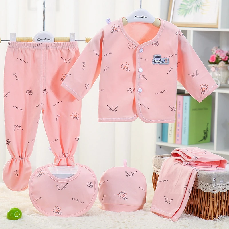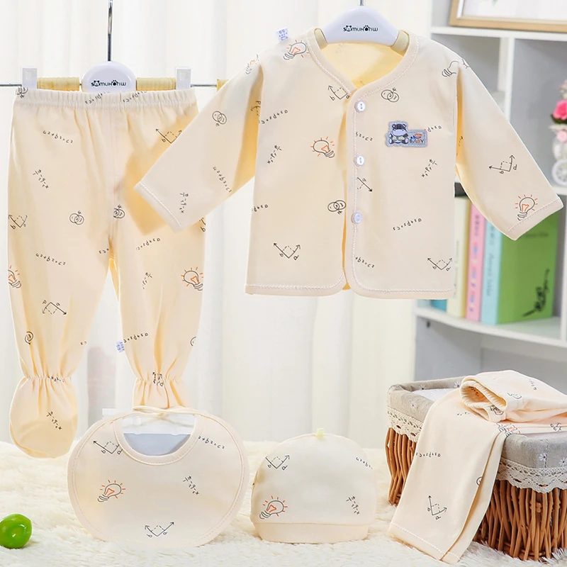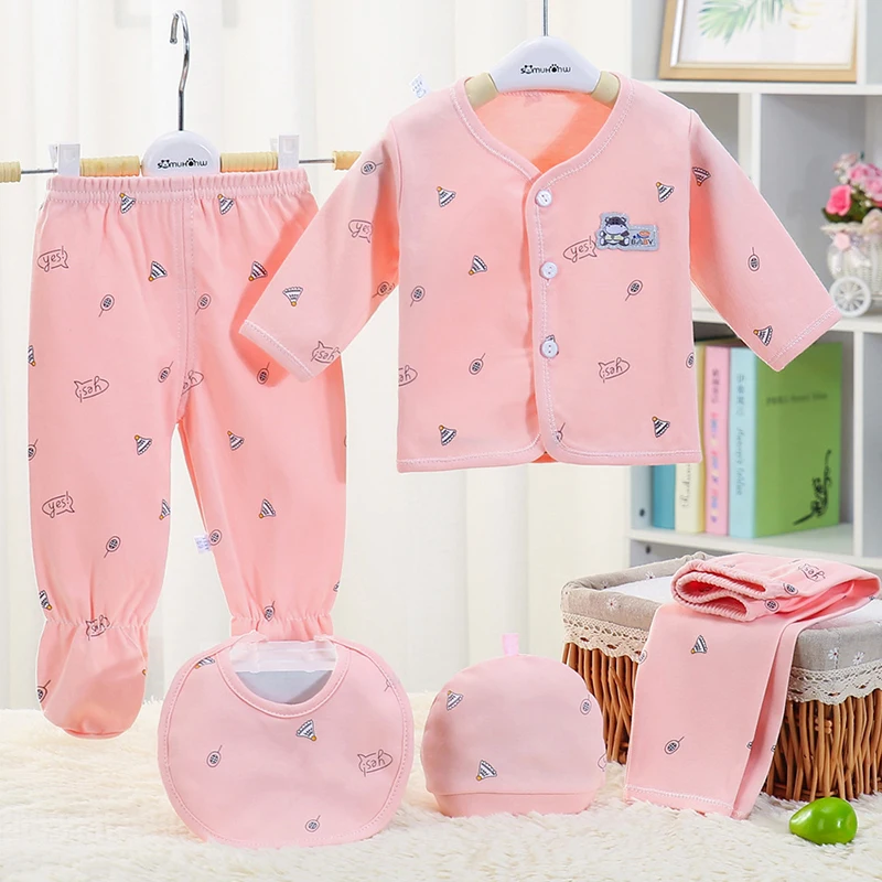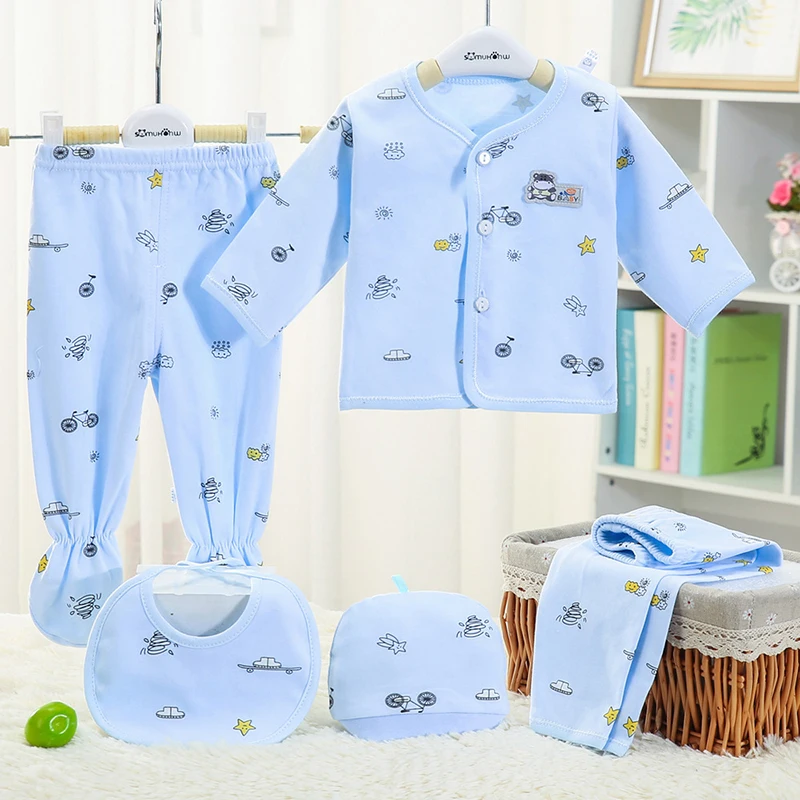 Baywell5 шт., Одежда для новорожденных, унисекс, для детей от 0 до 3 месяцев, весенне-осенние комплекты одежды с рисунком, топы, брюки, шапка, нагрудники
