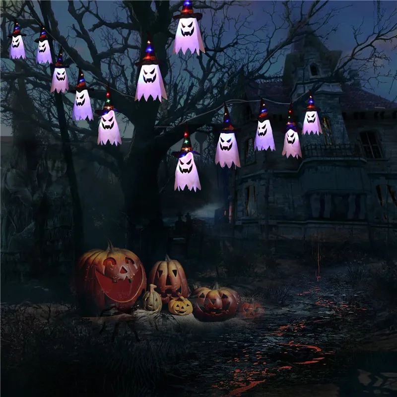СВЕТОДИОДНАЯ Гирлянда для вечевечерние НКИ на Хэллоуин, уличная цветная подвесная Декоративная гирлянда с призраком и шляпой ведьмы, инструменты для украшения на Хэллоуин