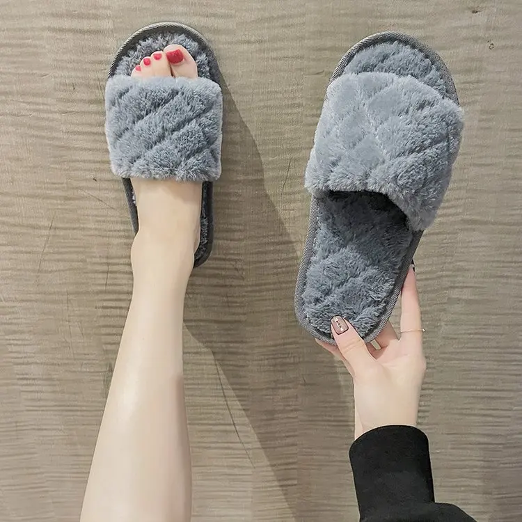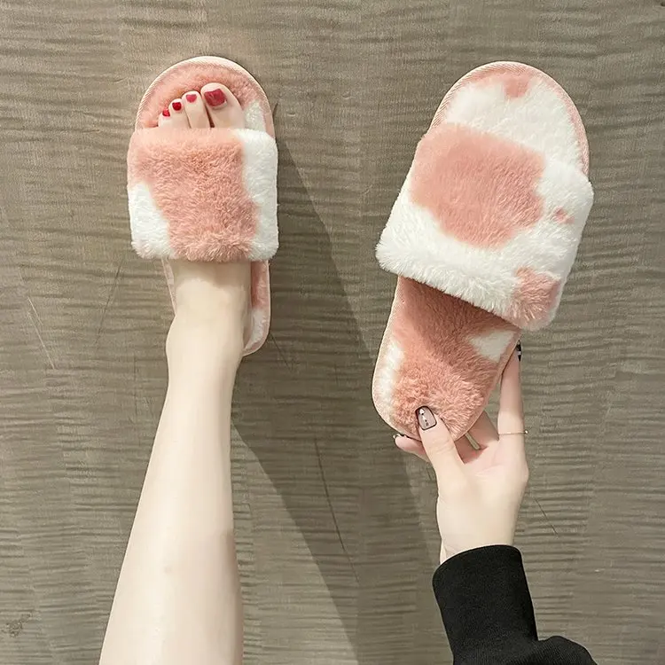 Новинка, зимние женские плюшевые тапочки, теплая женская обувь на плоской подошве из искусственного меха, женские домашние тапочки без застежки