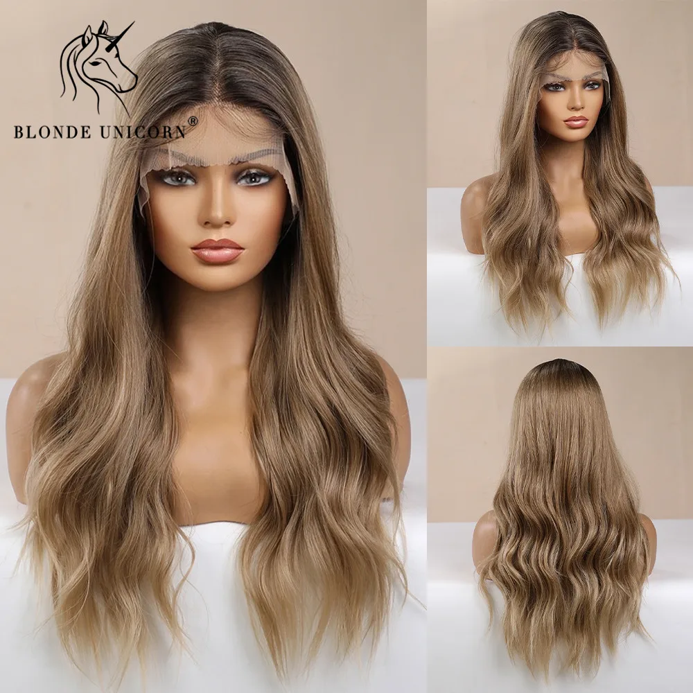Парик Синтетический с длинными волосами для женщин, жаропрочное волокно высокой плотности, с длинными волосами блонд, единорог, Омбре, блонд, коричневый
