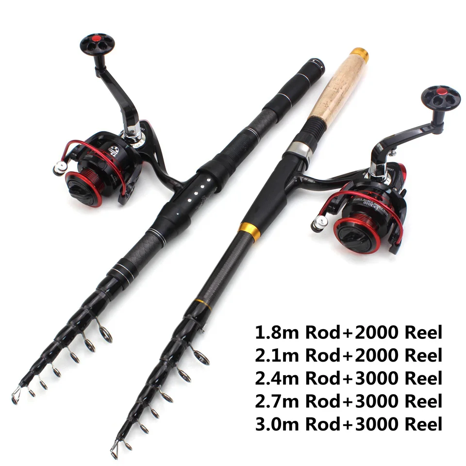 Телескопическая удочка из углеродного волокна, портативное спиннинговое удилище и катушки, многофункциональный набор, 1,8 м, 2,1 м, 2,4 м, 2,7 м, 3,0 м