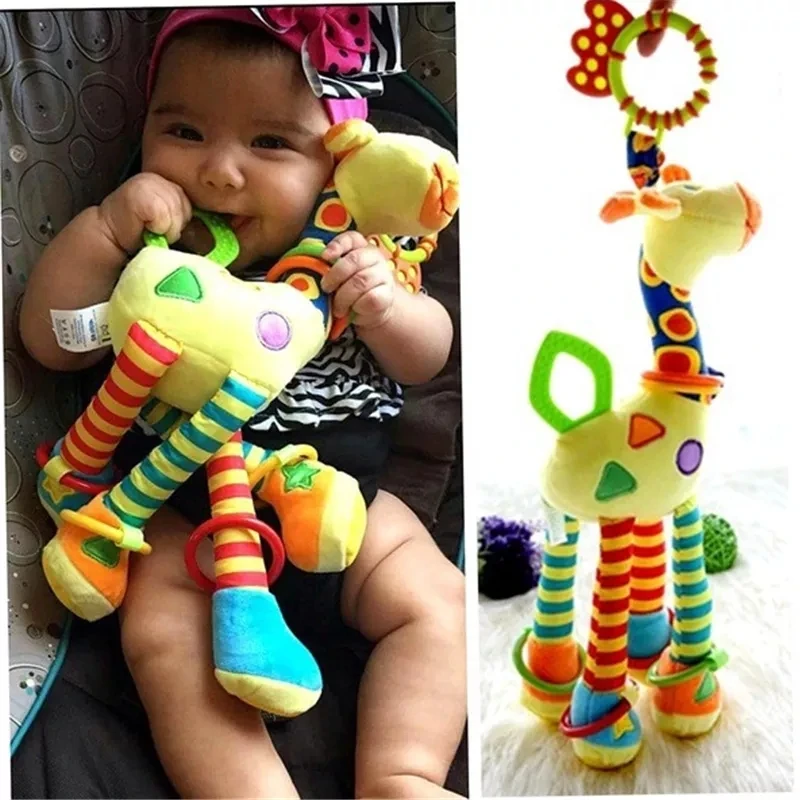 Погремушка-Жираф для новорожденных, плюшевая, для детей 0-12 месяцев, колокольчики для детской коляски