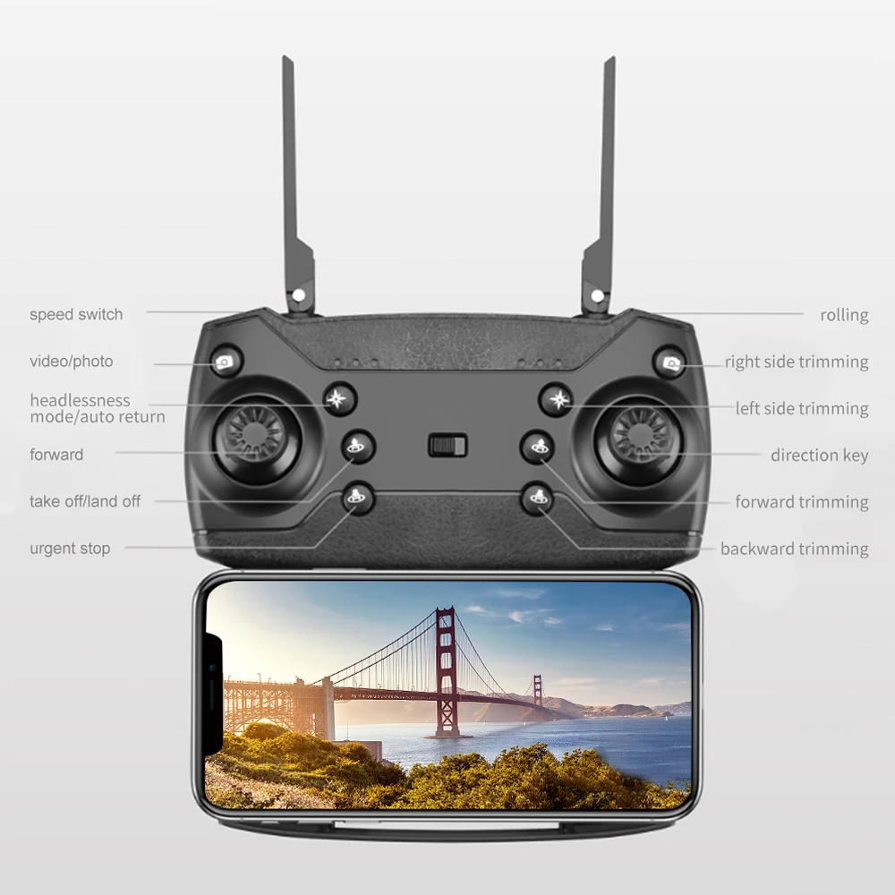 1. Функции: вверх/вниз, вперед/назад, влево/вправо, боковой полет, трехуровневая скорость полета, Безголовый режим, автоматический возврат одной кнопкой, режим удержания высоты, Wi-Fi FPV, траектория полета, камера/видео.