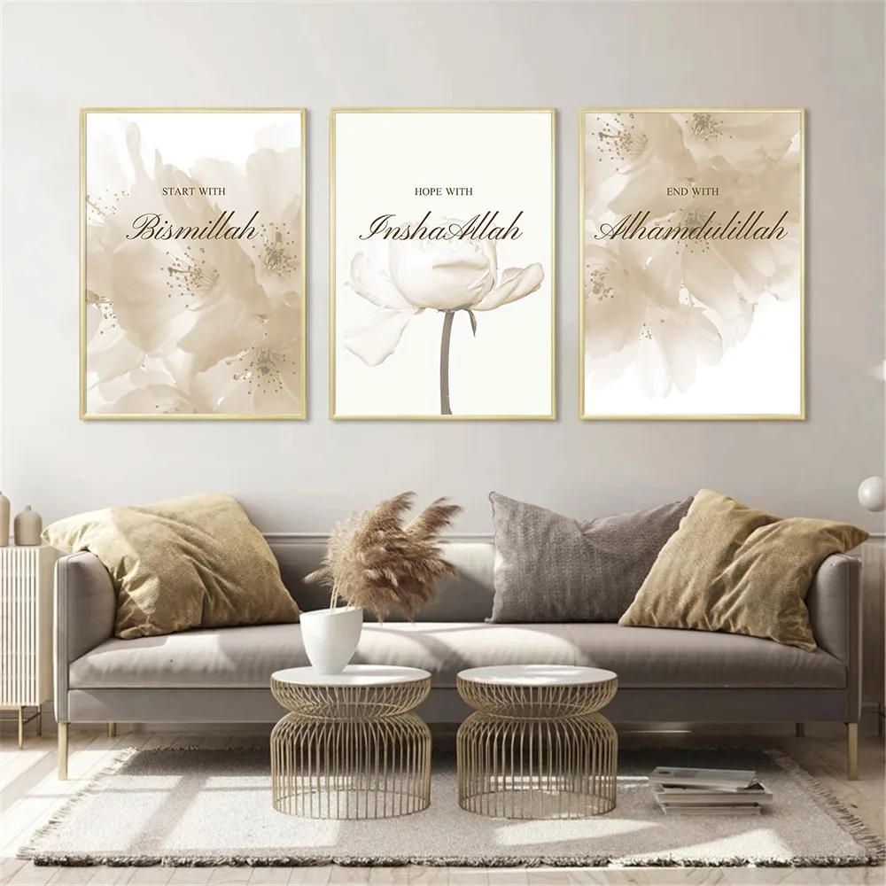 Blooming Flower PosterBismillah Islamic Canvas Print