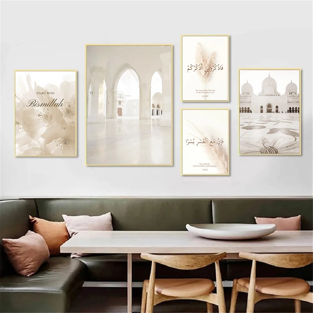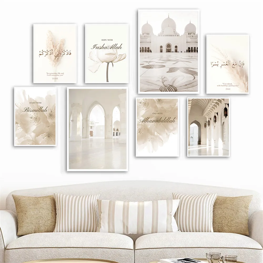Бежевый цветочный плакат, Исламская фотография, тадж-махал, здание,...