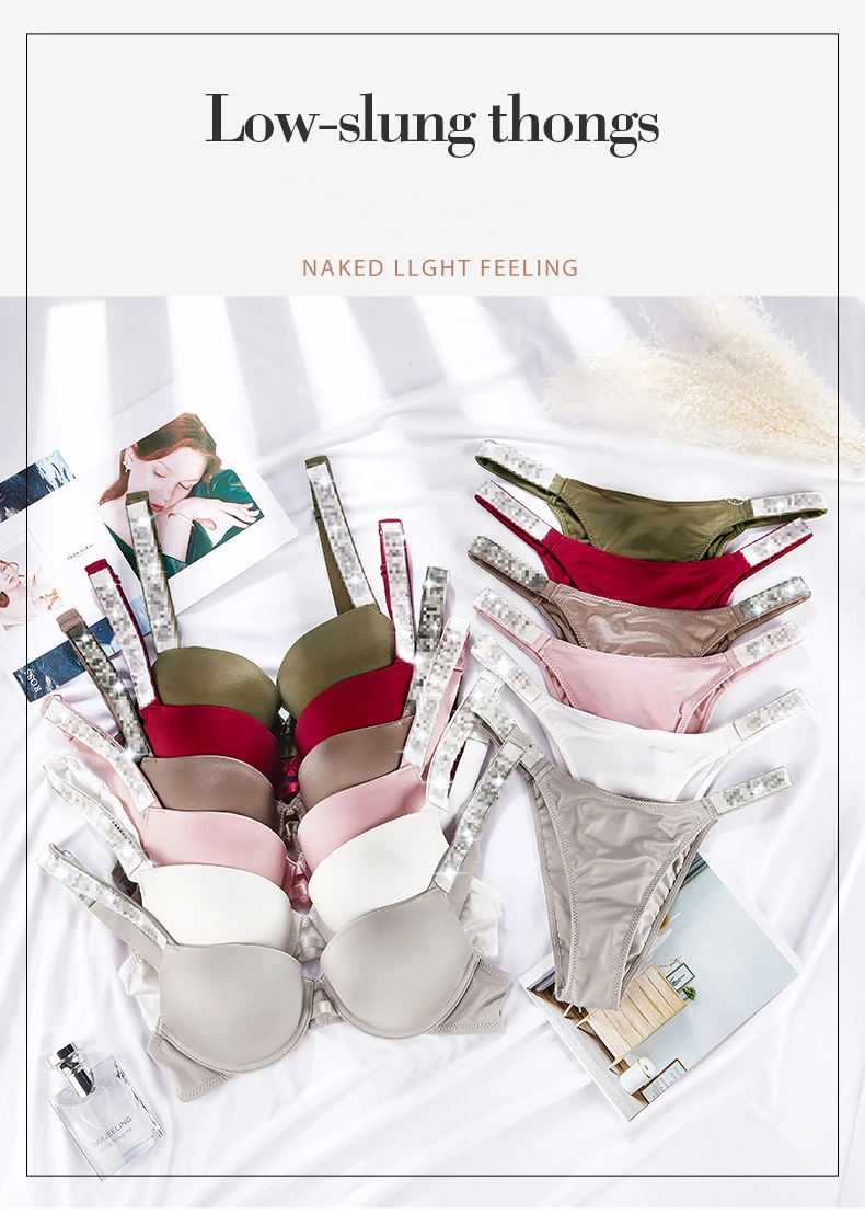 Комплект женского нижнего белья с чашками пуш-ап и бриллиантами