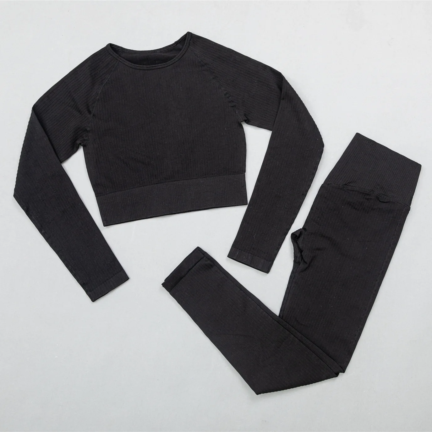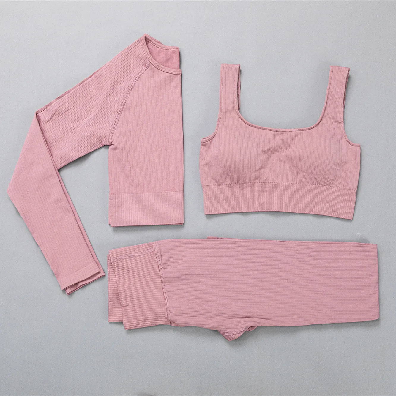 23 шт. бесшовный комплект для фитнеса и йоги, одежда для тренировок, спортивная одежда, спортивный тренажерный зал, леггинсы, бюстгальтер, короткий топ, костюм для йоги с длинным рукавом