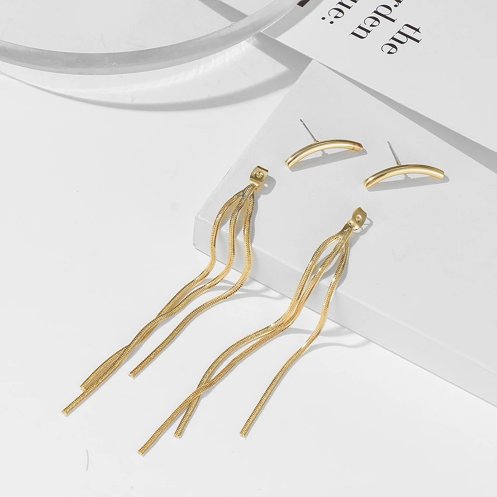 Женские Висячие серьги золотистого цвета в винтажном стиле с длинной нитью и кисточками, блестящие геометрические корейские модные ювелирные изделия