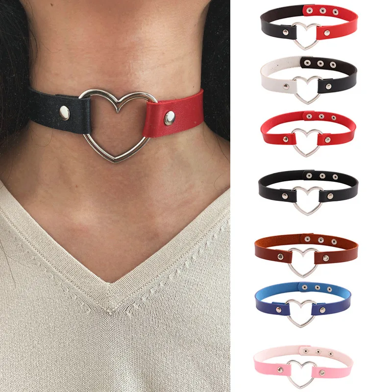 Ожерелье-чокер женское из искусственной кожи, колье с отверстиями в форме сердца в стиле панк, металлическое цветное колье до ключиц в готическом стиле, вечерняя вечерние жутерия, 1 шт., N252