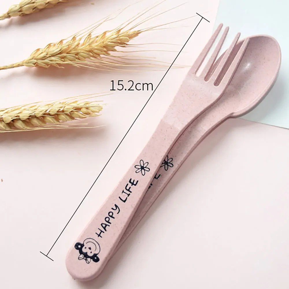 3 шт., детская посуда, ложка, вилка, пшеничная солома