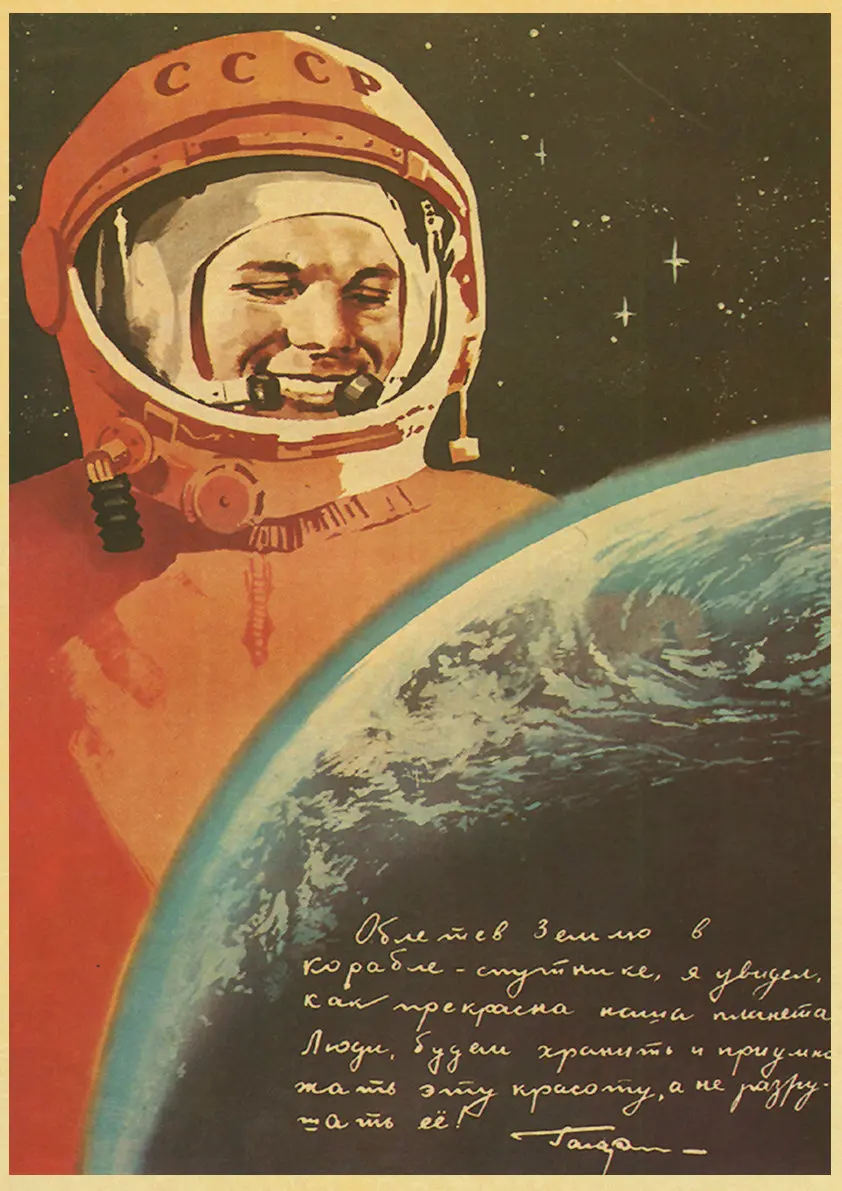 Винтажный российский пропагандистский постер Space Man, постеры и принты СССР в стиле ретро космической гонки, Настенный декор из крафт-бумаги