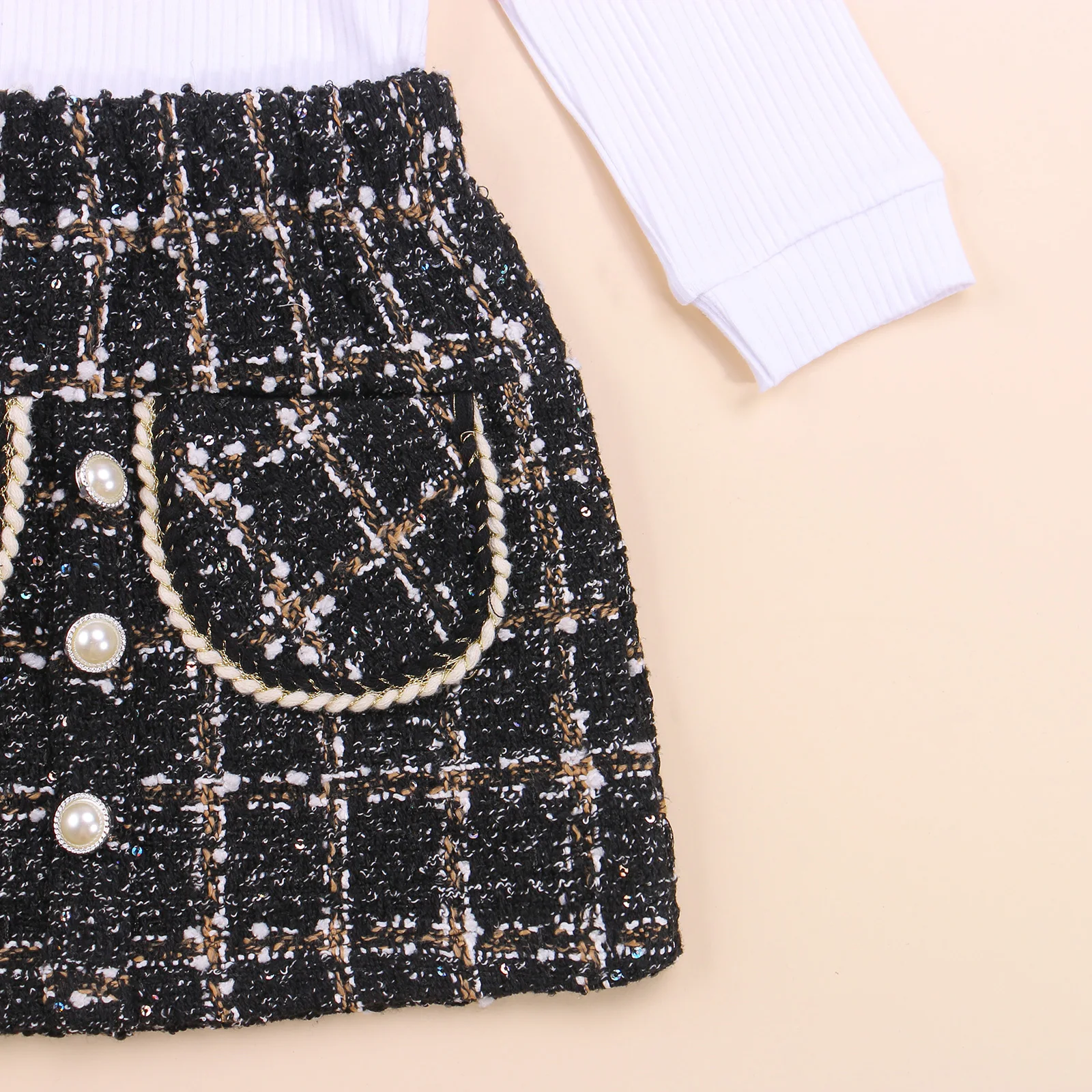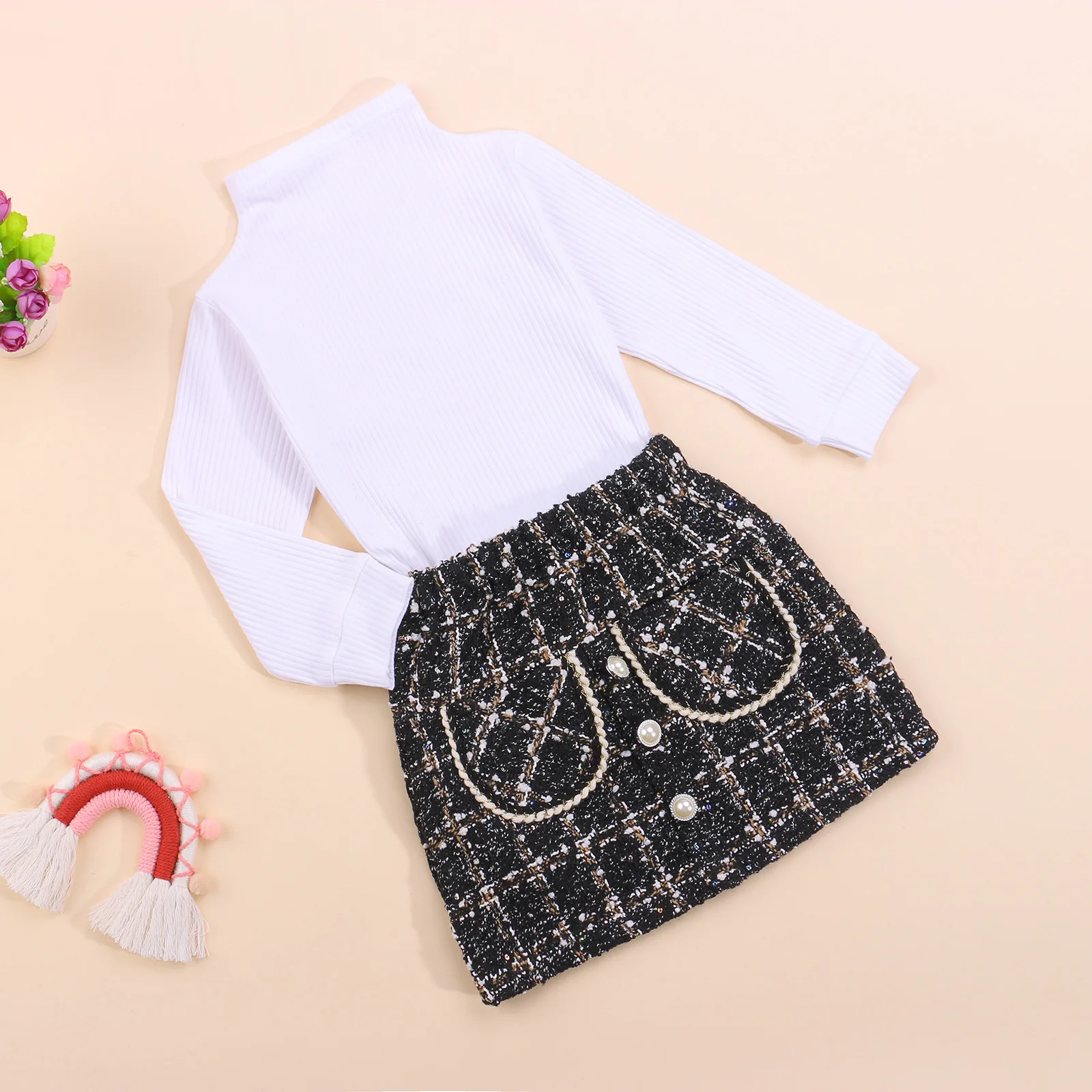 Осенне-зимний комплект одежды для девочек, трикотажный топ с длинным рукавом и клетчатая мини-юбка, комплект одежды для девочек из 2 предметов, От 1 до 6 лет