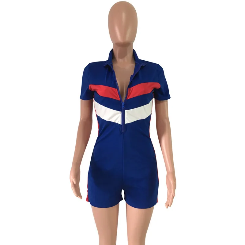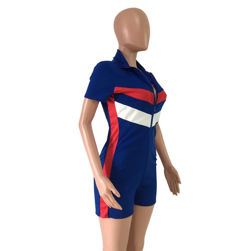 Повседневные полосатые боди, летние комбинезоны, Облегающий комбинезон, шорты для женщин, короткий рукав, водолазка, комбинезон на молнии