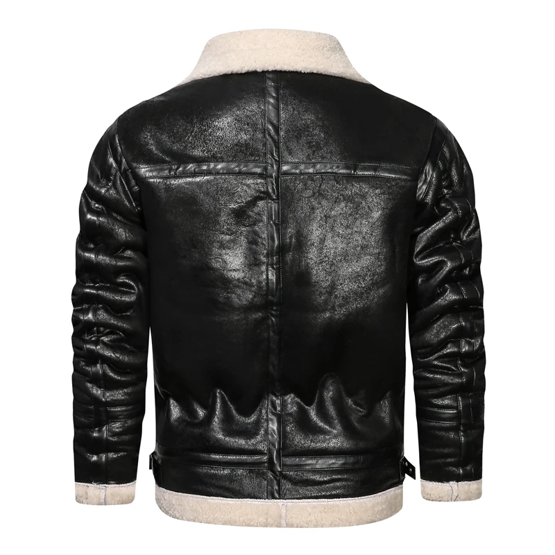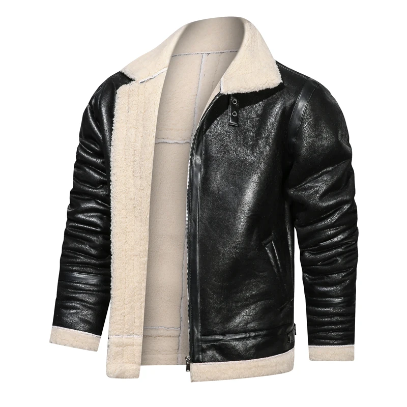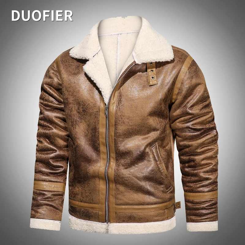 Мужская зимняя куртка из ПУ кожи, на флисе, с воротником с лацканами