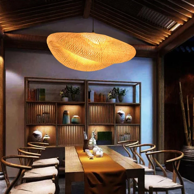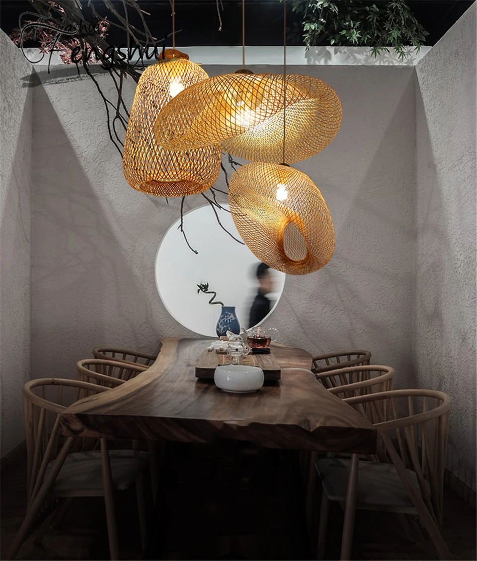 Китайские плетеные подвесные светильники из бамбукового плетения из ротанга E27, светильники, фонари ручной работы для гостиной, столовой, отеля, дома, подвесные светильники