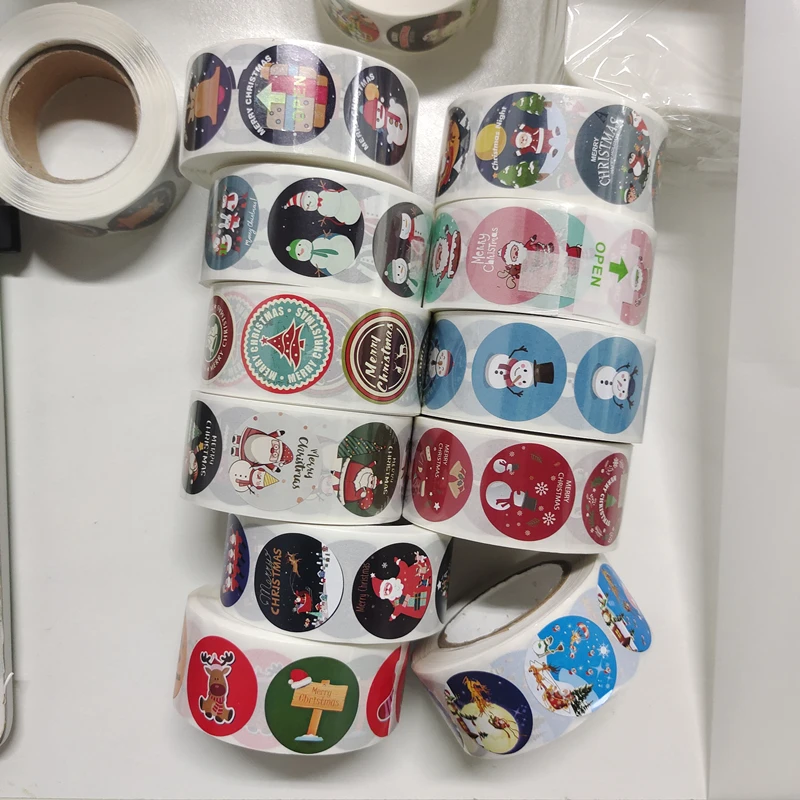 1 рулон рождественских наклеек, 500 шт., декоративные наклейки с животными, снеговиками, деревьями, декоративная наклейка для упаковки новогодних подарков, этикетка, рождественские бирки