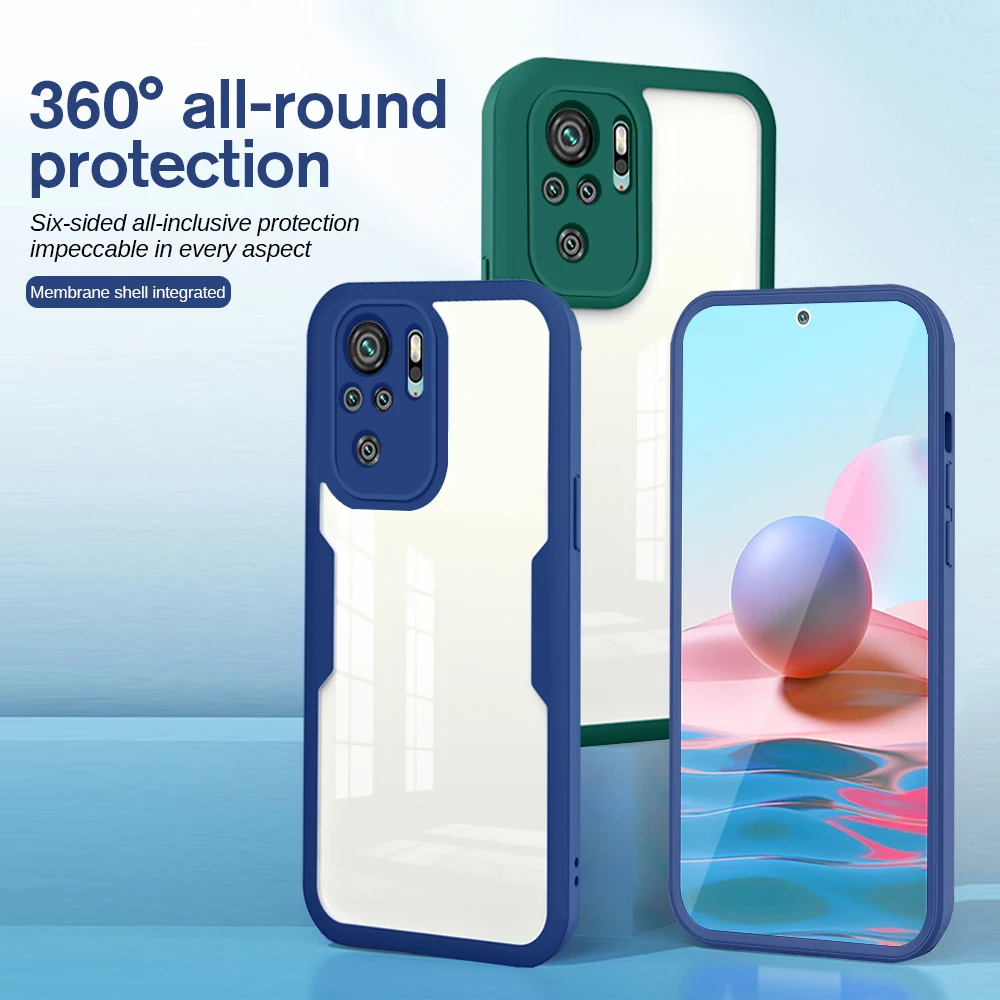Чехол для Xiaomi Redmi Note 10s 360 с полным покрытием, Передняя Задняя крышка для Poco M3 X3 Mi 11 10 Lite Pro, прозрачный защитный чехол для телефона