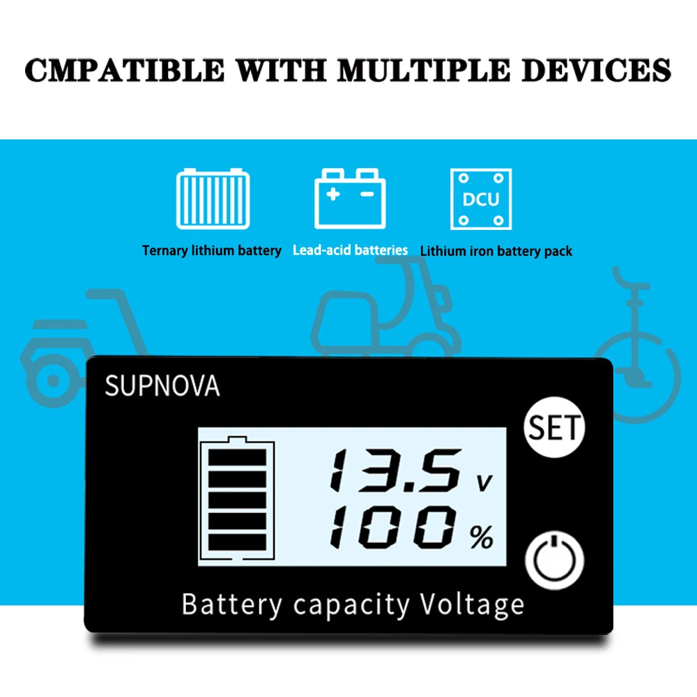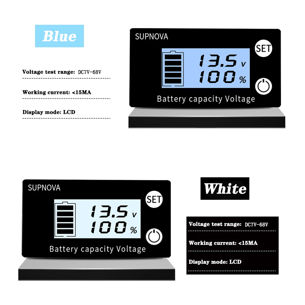Индикатор емкости аккумулятора, постоянный ток 7-68 в, свинцово-кислотный литий, LiFePO4, автомобильный, мотоциклетный, фотоэлектрический, 12 В, 24 В, 48 В