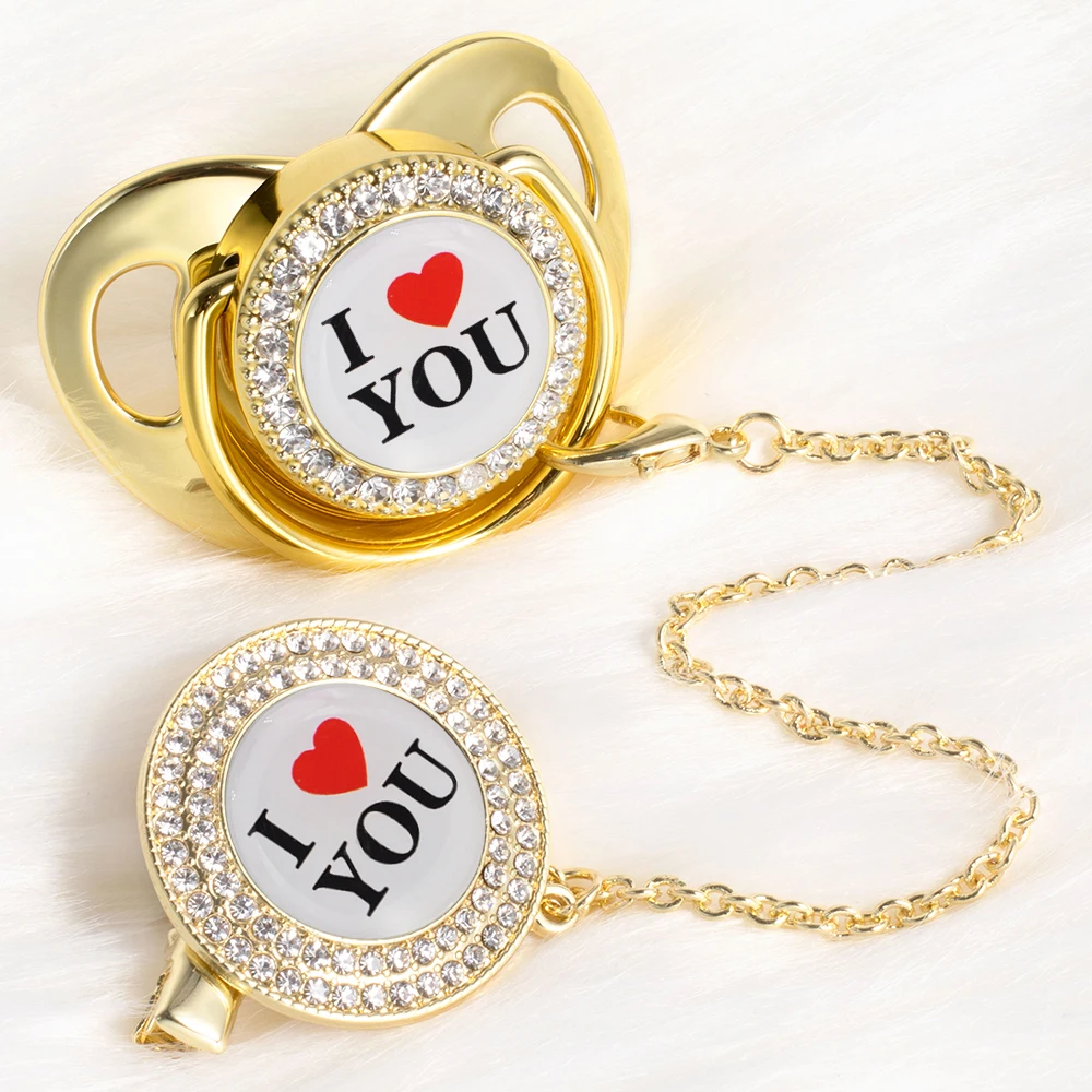 Cоска пустышка соски для новорожденных еда Роскошная блестящая Соска-пустышка I Love You с зажимами-цепочками для новорожденных, детская еда, силиконовая деталь, подарок для будущей мамы
