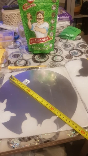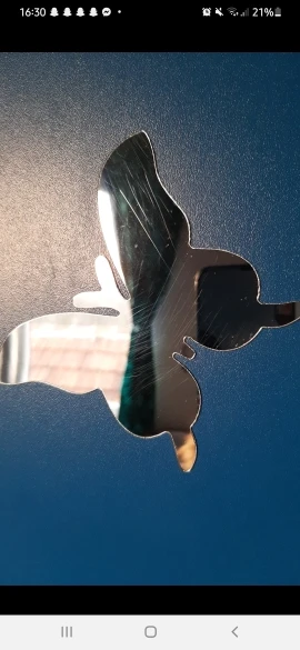 несмотря на низкую цену упаковки было много! но! все равно треснуло, но за старания плюс. ни звезду не сниму, ни спор не открою. уже приклеила на работе на шкаф, треснутые куски просто отломила и выкинула, бабочки отвлекают от этого места. еще и подарок положили, правда не знаю что это. трафарет или вырубка малюсенькая, не понять.