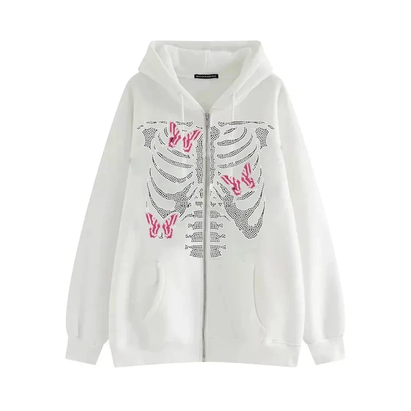 Женский свитшот с капюшоном, Свободный свитшот на молнии, с черепом...