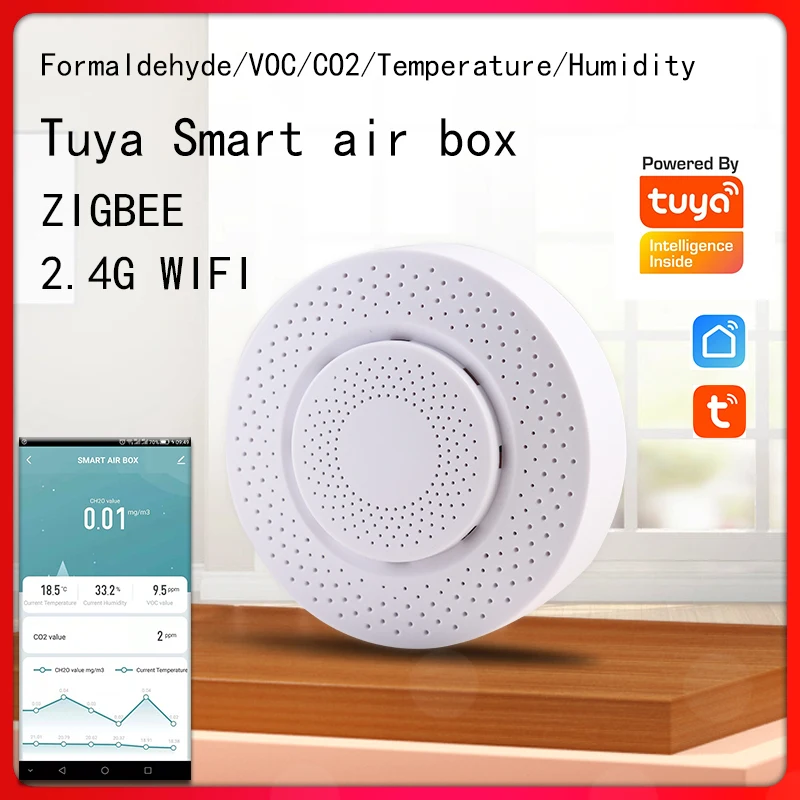 Смарт-Воздушный бокс FrankEver, Wi-Fi, ZIGBEE, формальдегид, VOC, CO2, датчик температуры и влажности, смарт-датчик, детектор сигнализации, умный дом Tuya