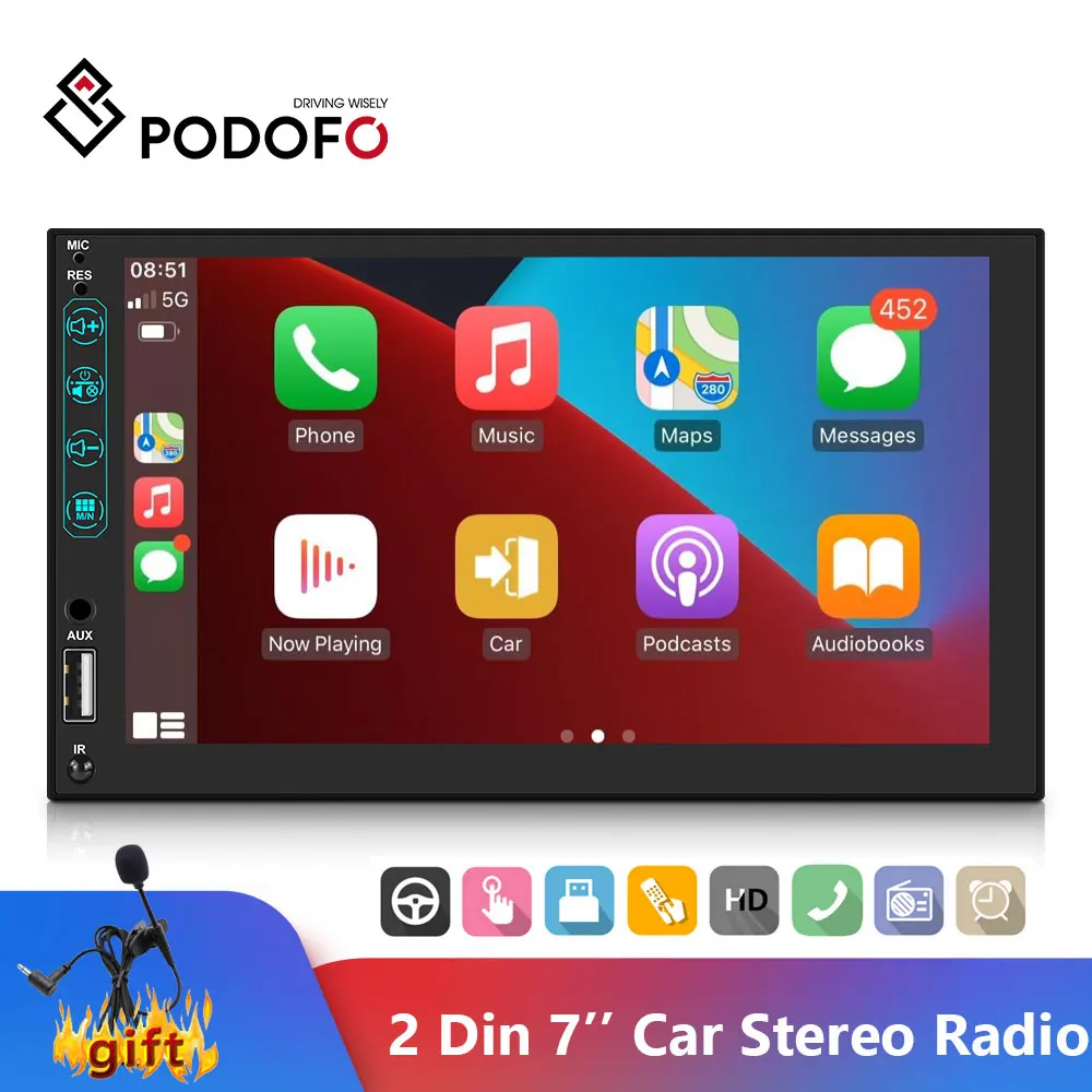 Автомагнитола Podofo, 2DIN, автомобильный мультимедийный видеоплеер, стерео, сенсорный экран 7 дюймов, FM, стерео, MP5 плеер с микрофоном для Toyota, Nissan