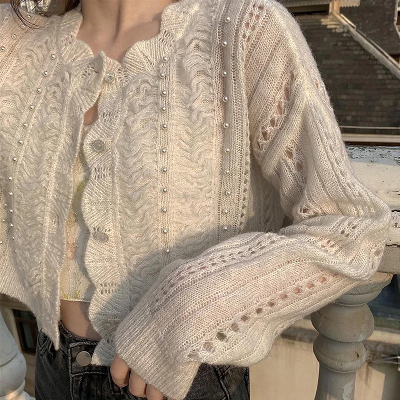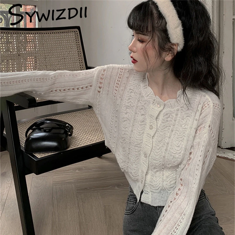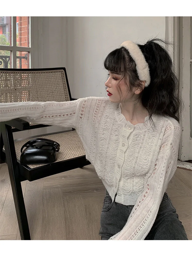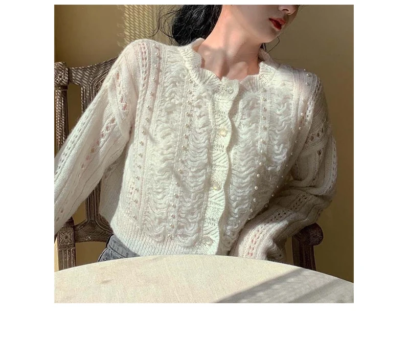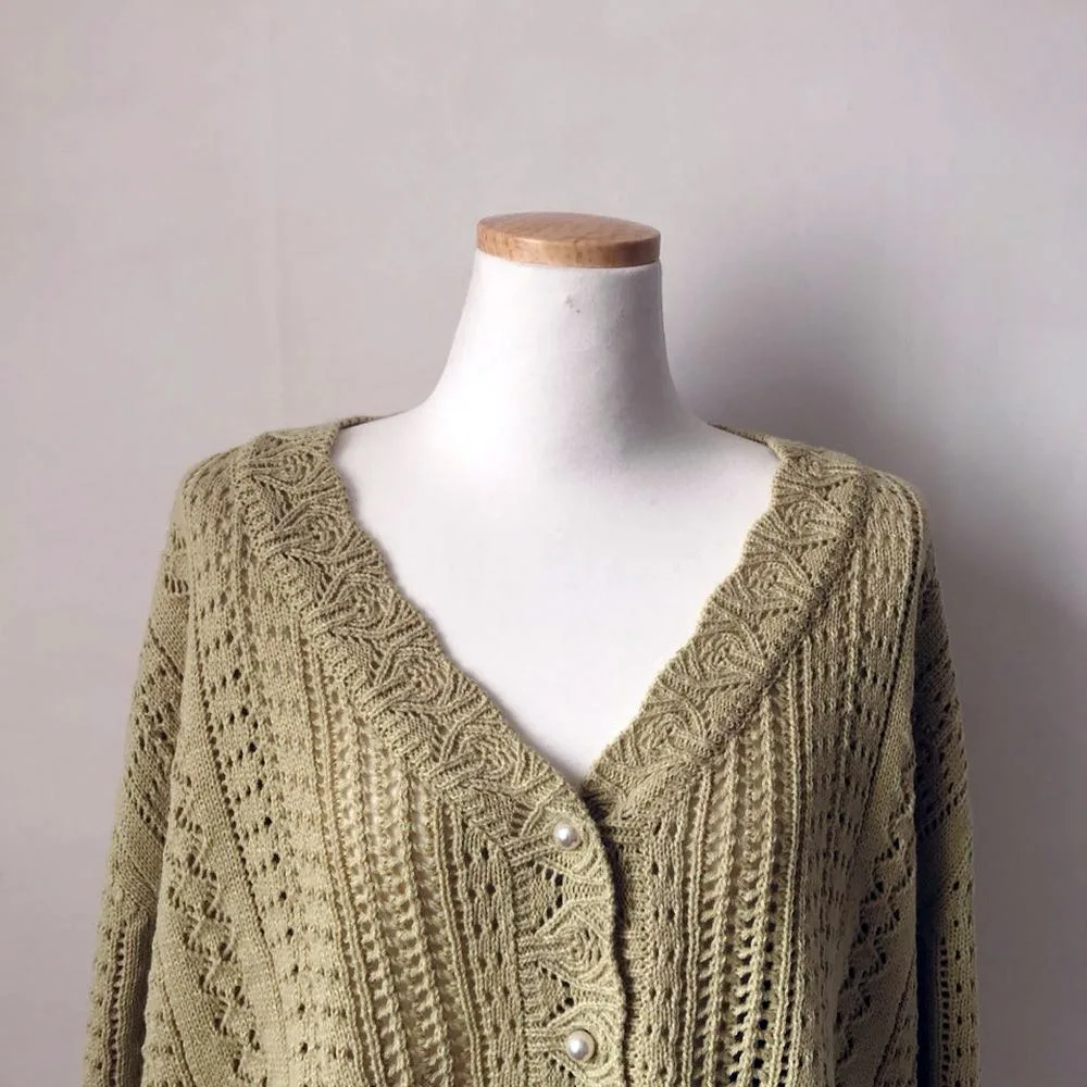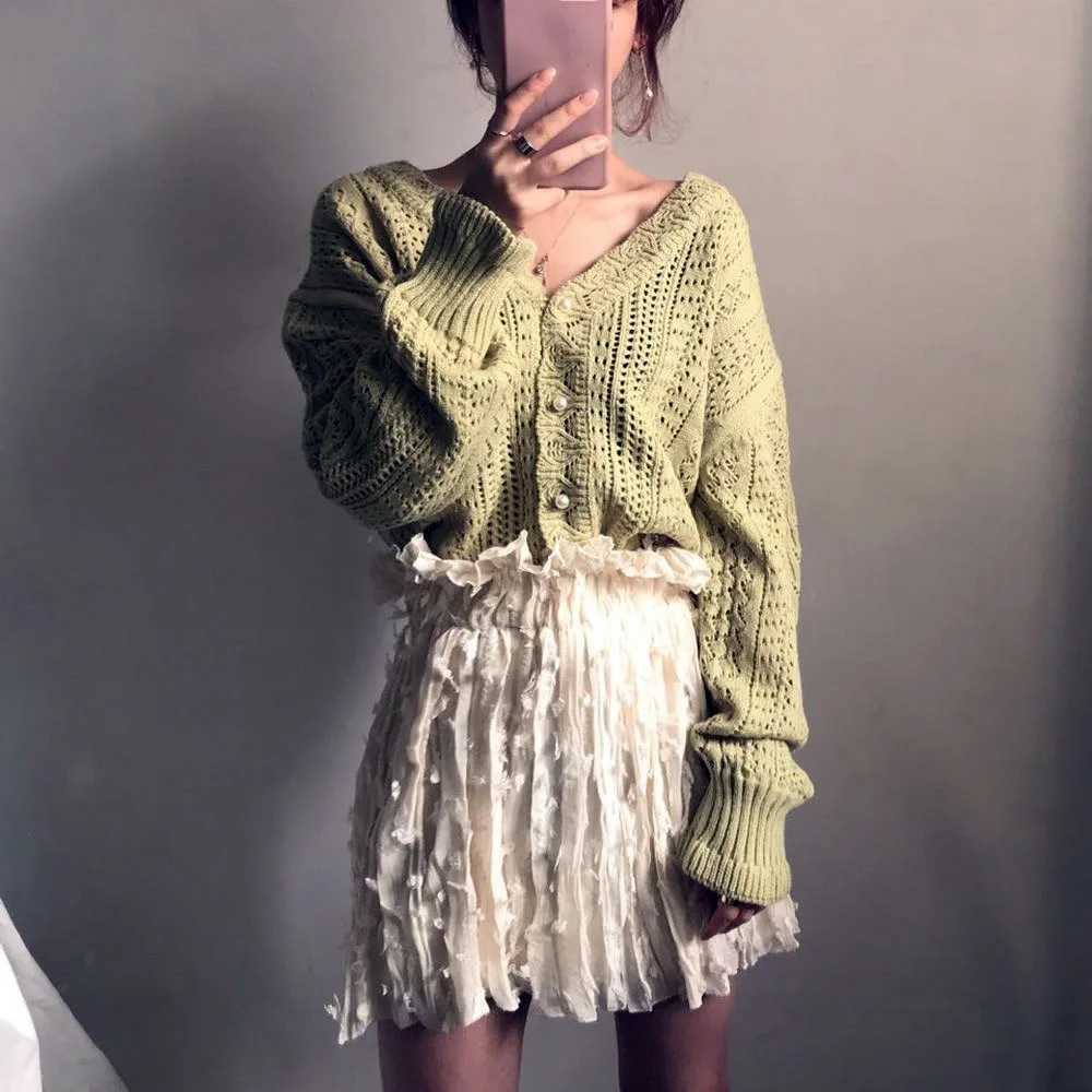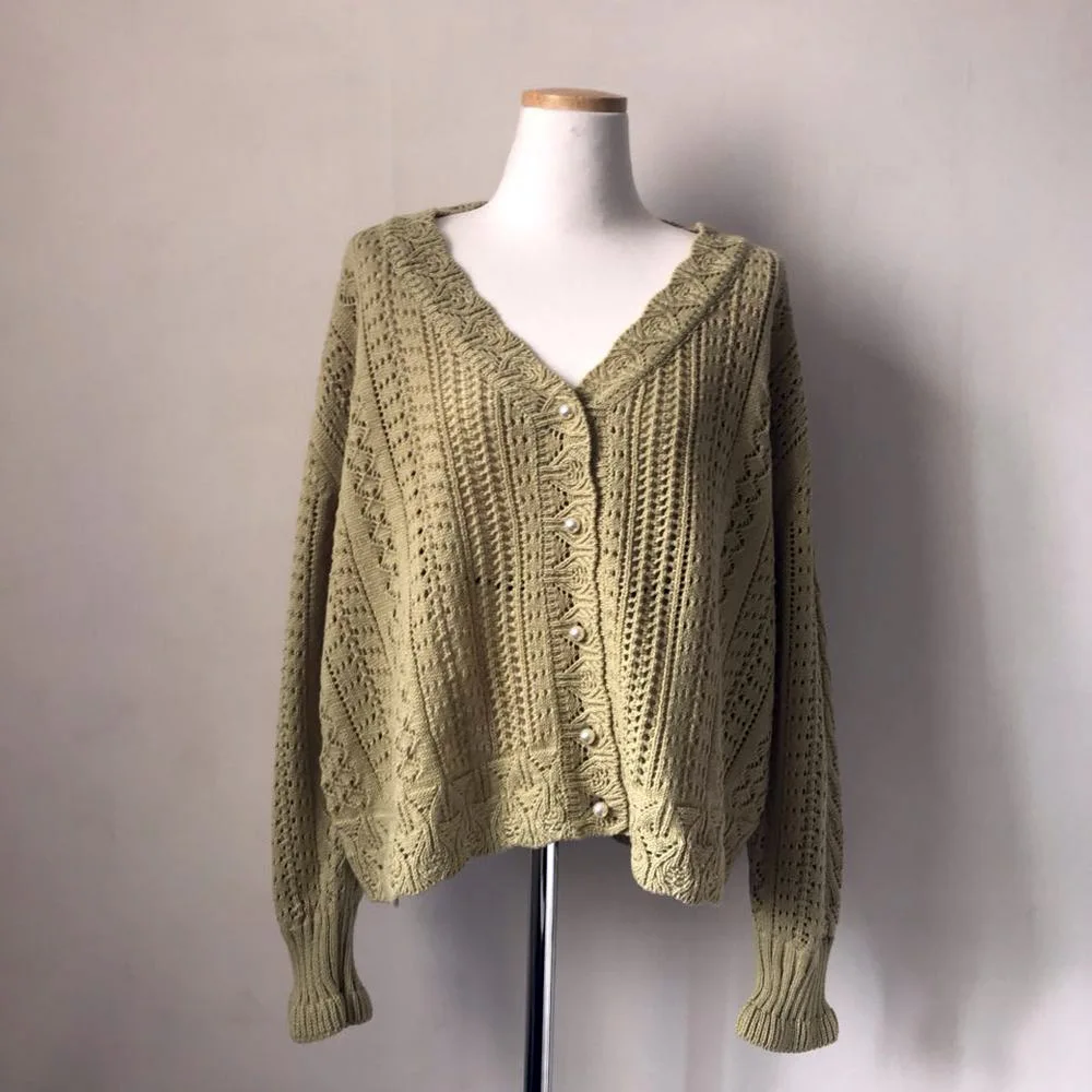 Женский вязаный кардиган с V-образным вырезом и длинным рукавом