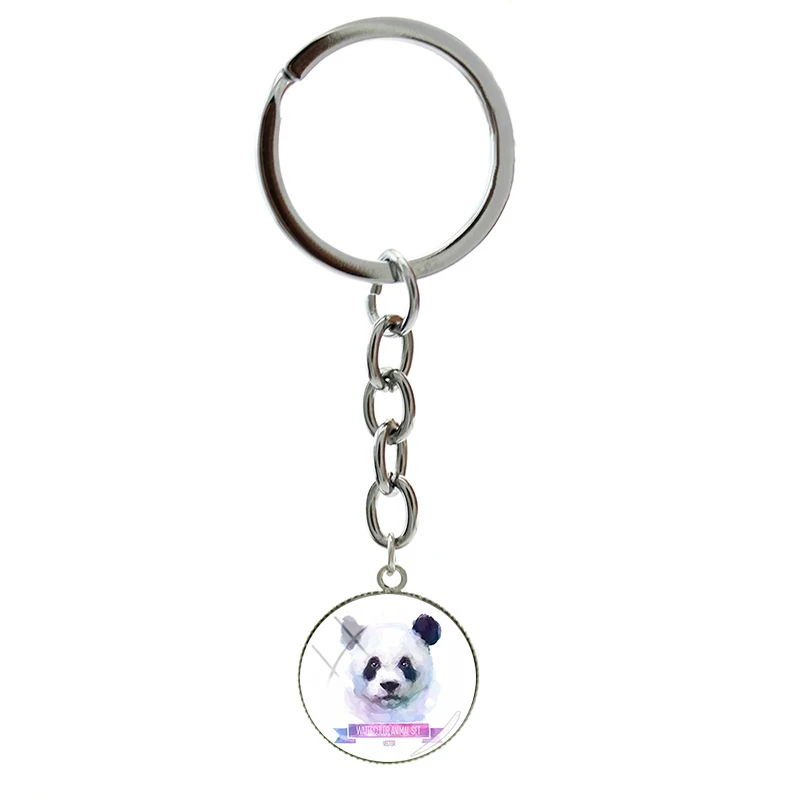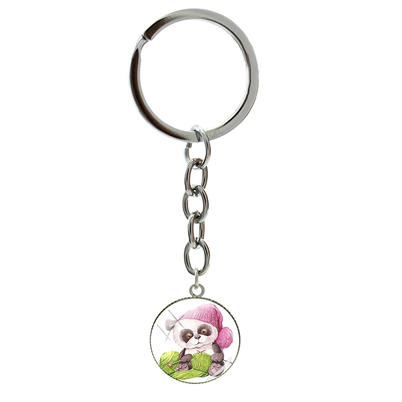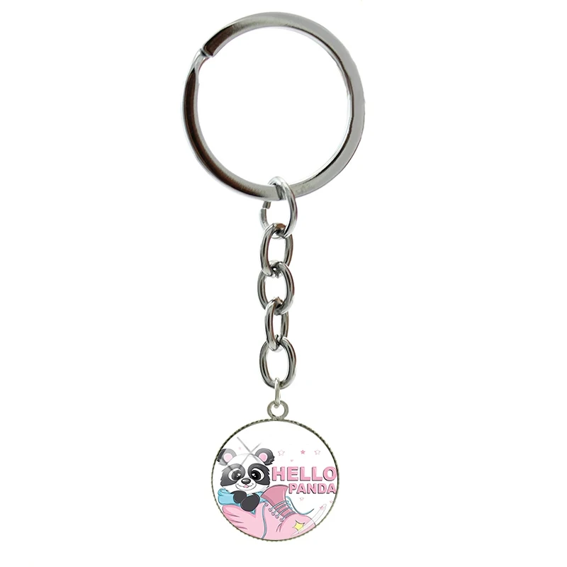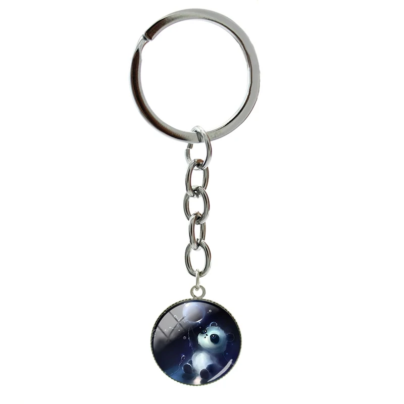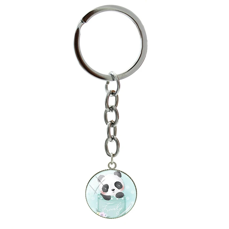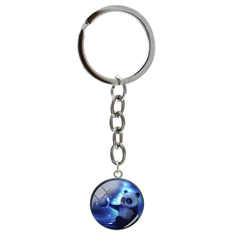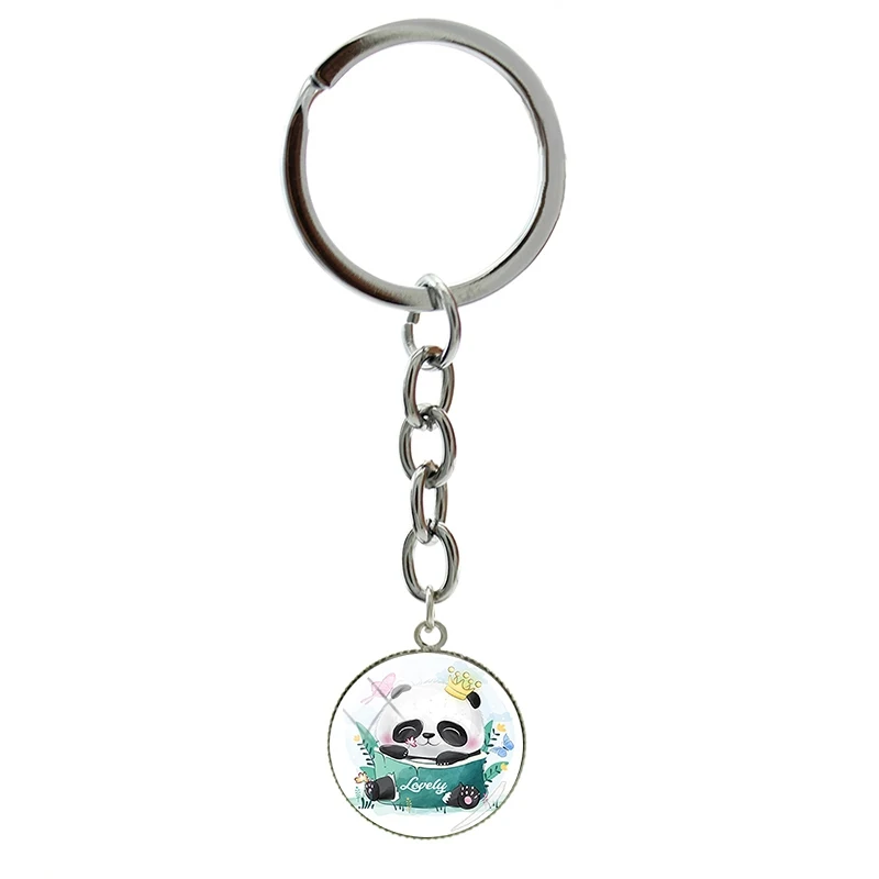 Q версия брелоки с пандой и гирляндой брелоки довольно милые малые панды 20 мм брелоки с рисунком круглые стеклянные металлические брелоки