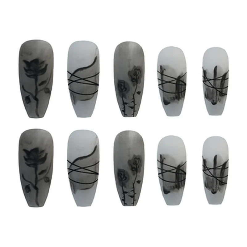 24 шт. сказочные похоронные черные розы, съемные накладные ногти, б...