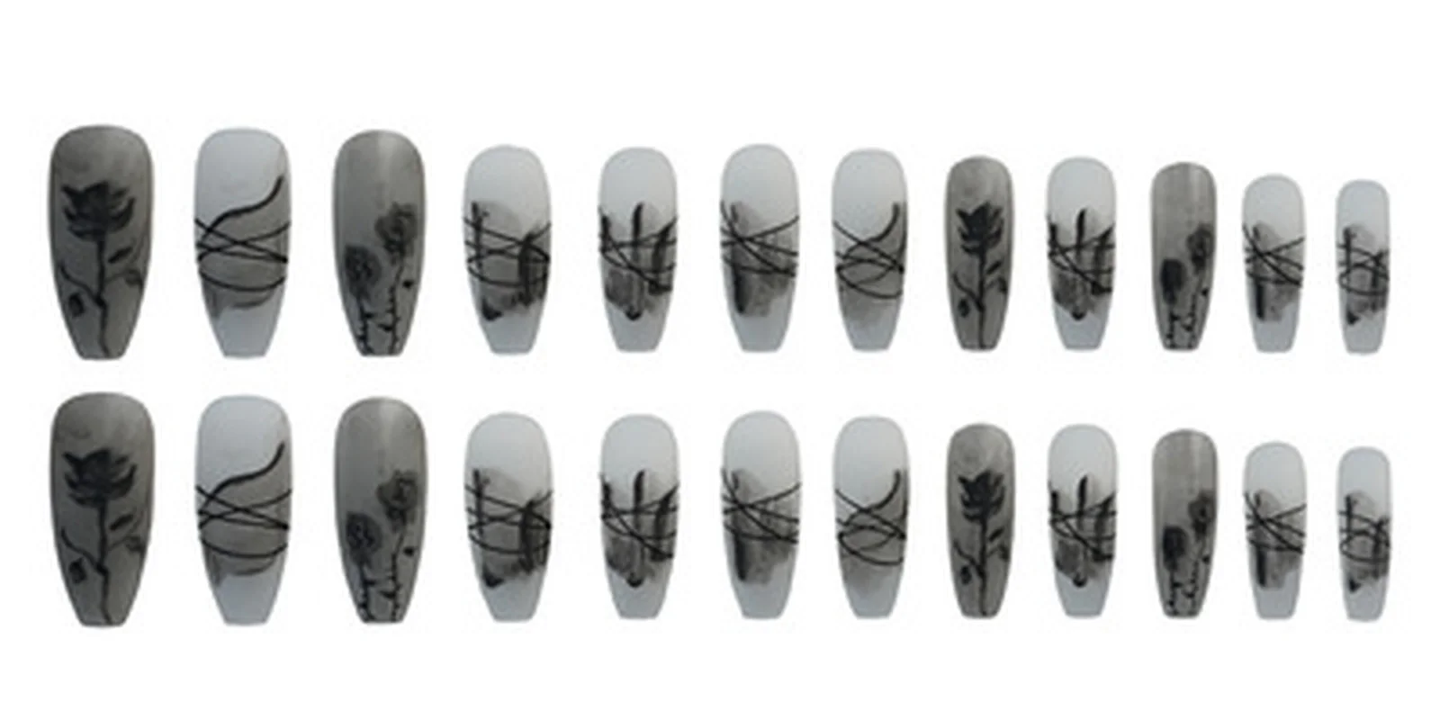 24 шт./компл. сверхдлинный гроб накладные ногти Красота цветок тушью Живопись Стиль акриловые наклейки на ногти Полный балет дизайн ногтей советы
