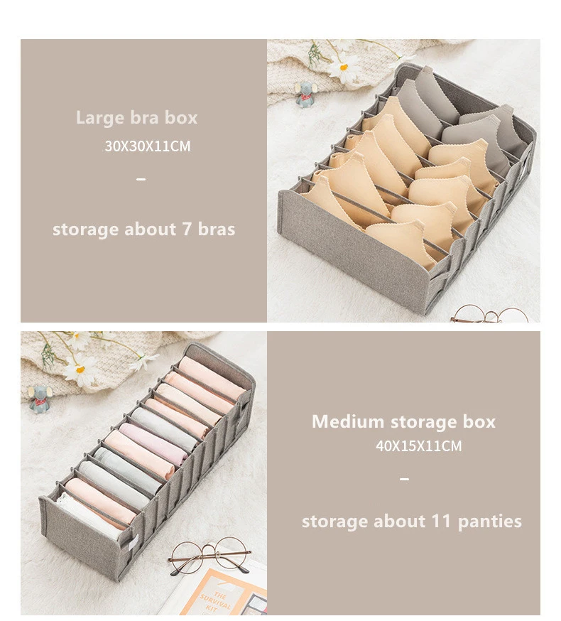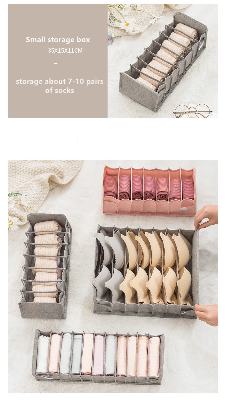 Спецификация продукта:Тип: Коробка Для Хранения нижнего бельяМатериал: хлопок и ленЦвет: серый, розовыйСетки: 7 сеток, 11 сетокРазмер 11 сетки одного ряда:40х15х11 см (для нижнего белья)Размер 7 сетки однорядные:35х15х11 см (для носков)