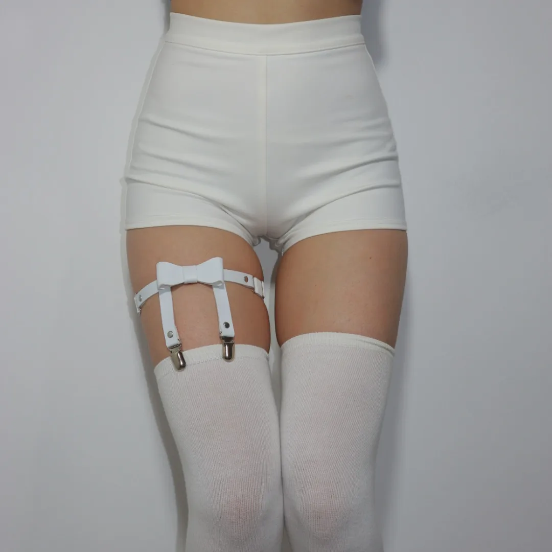 Пояс для чулок с бантом Женский, пикантный пояс из искусственной кожи в стиле панк и готика, регулируемый размер, кольцо на бедро