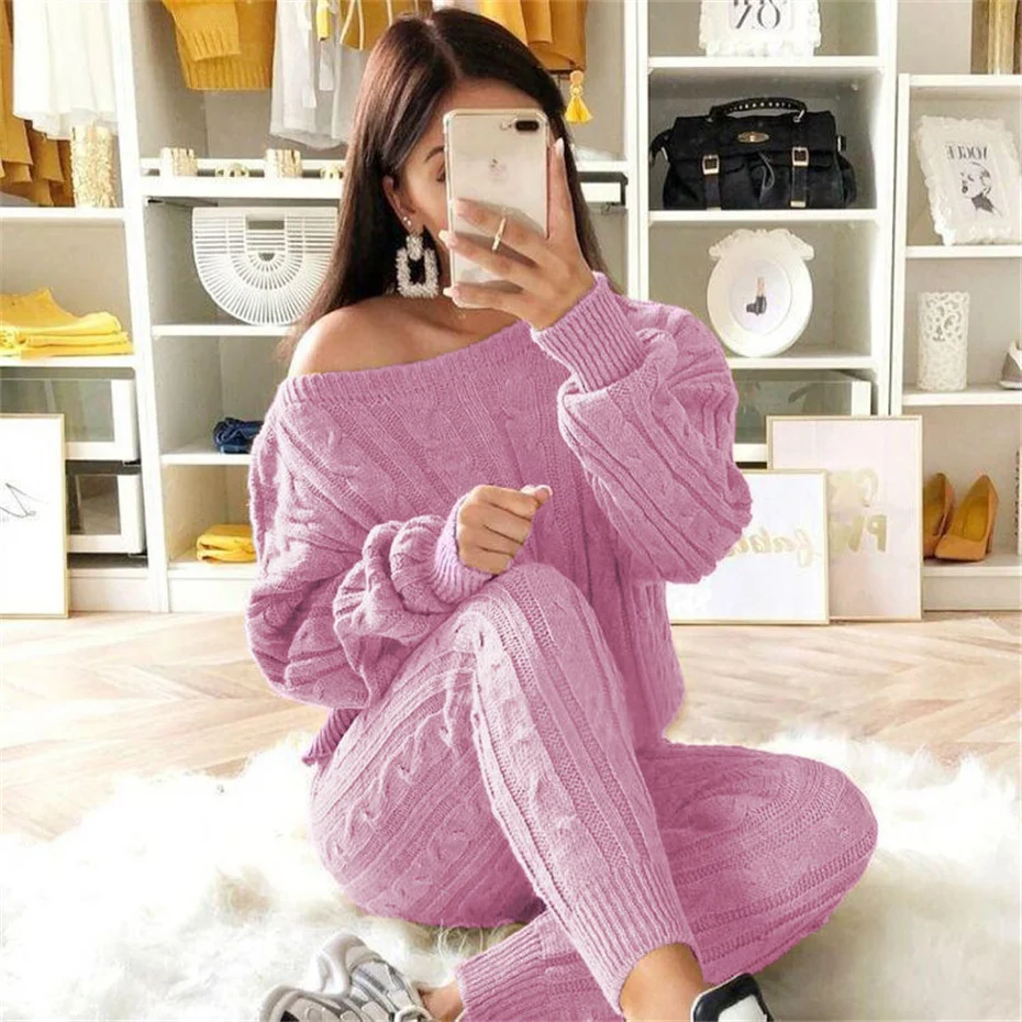 Осенне-зимний женский комплект из 2 предметов, повседневный трикота...