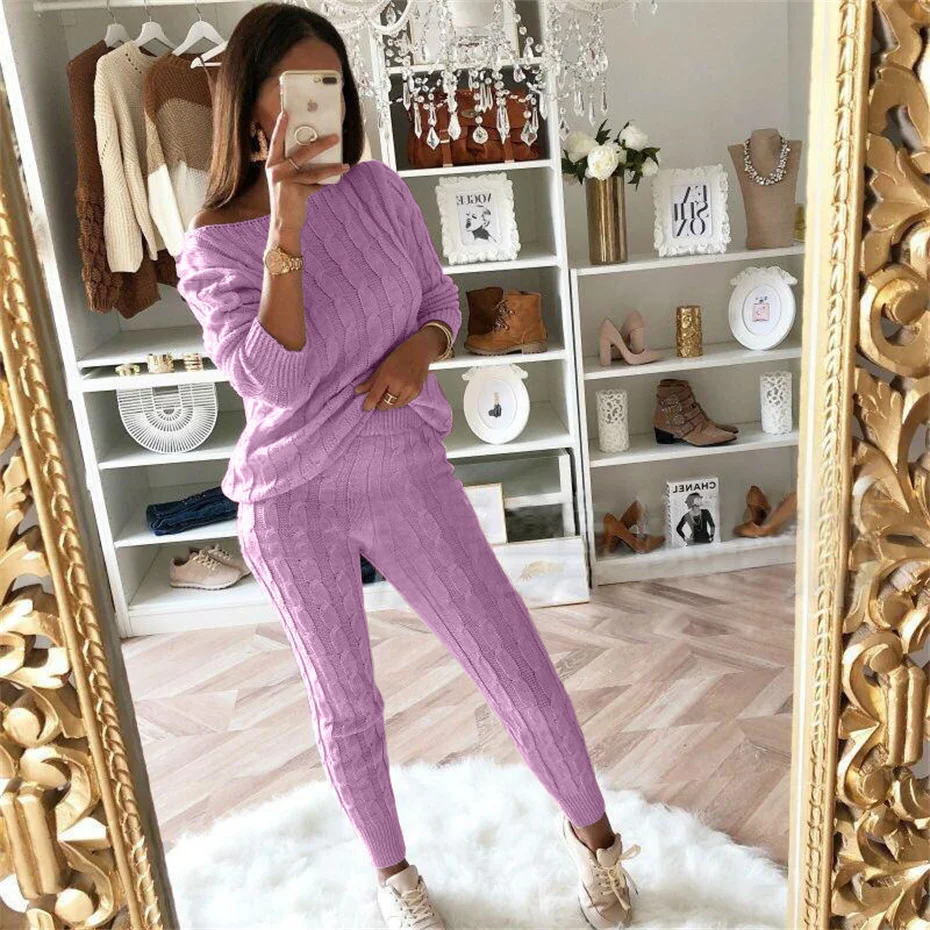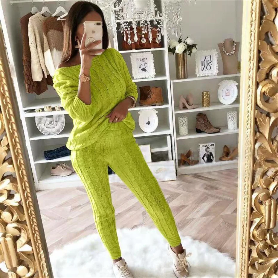 Женский трикотажный Костюм-двойка, Однотонный свитер и брюки, на осень и зиму, 2021
