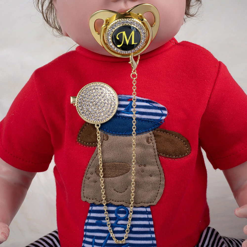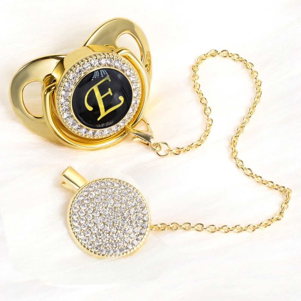 Cоска пустышка для новорожденных от 0 детские товары Роскошные черные блестящие зажимы для соски-пустышки с буквами алфавита M для младенцев соска золотые буквы уникальные 26 инициалов подарок для будущей мамы