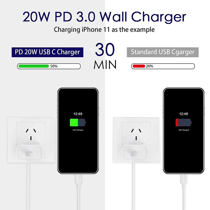 Адаптер питания PD 20 Вт USB-C, вилка стандарта США и ЕС, быстрая з...