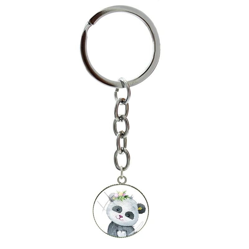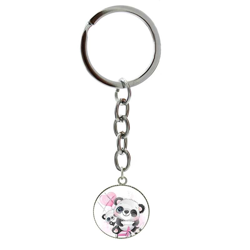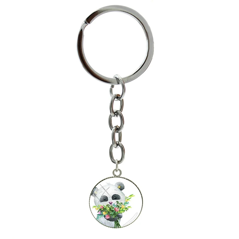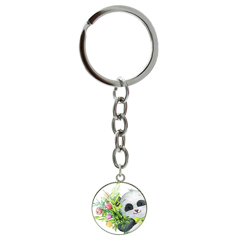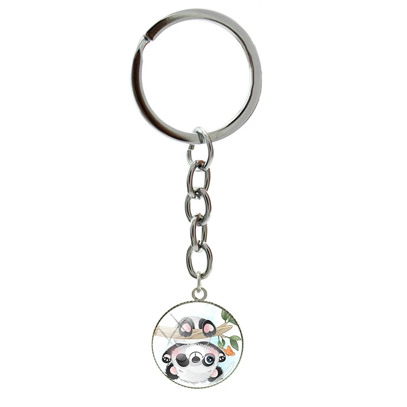 Мультяшная панда, простые животные, брелки 2021, аниме, фотографии, стеклянный купол, кулон, брелки для студентов, сумка, декоративные брелки