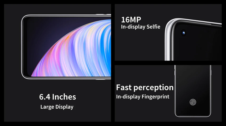 6,4 полноэкранный экран; Разрешение: 2400x1080 FHD +;Corning Gorilla Glass; Соотношение между экраном и корпусом:90.8%
