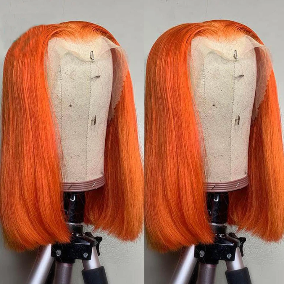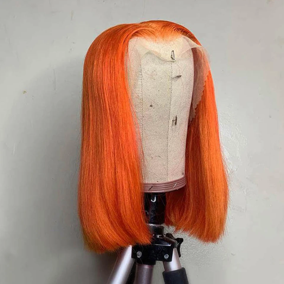 Имбирный оранжевый прямой предварительно выщипанный короткий Боб кружевной передний парик для женщин 180% Плотность синтетические Детские волосы без клея термостойкий