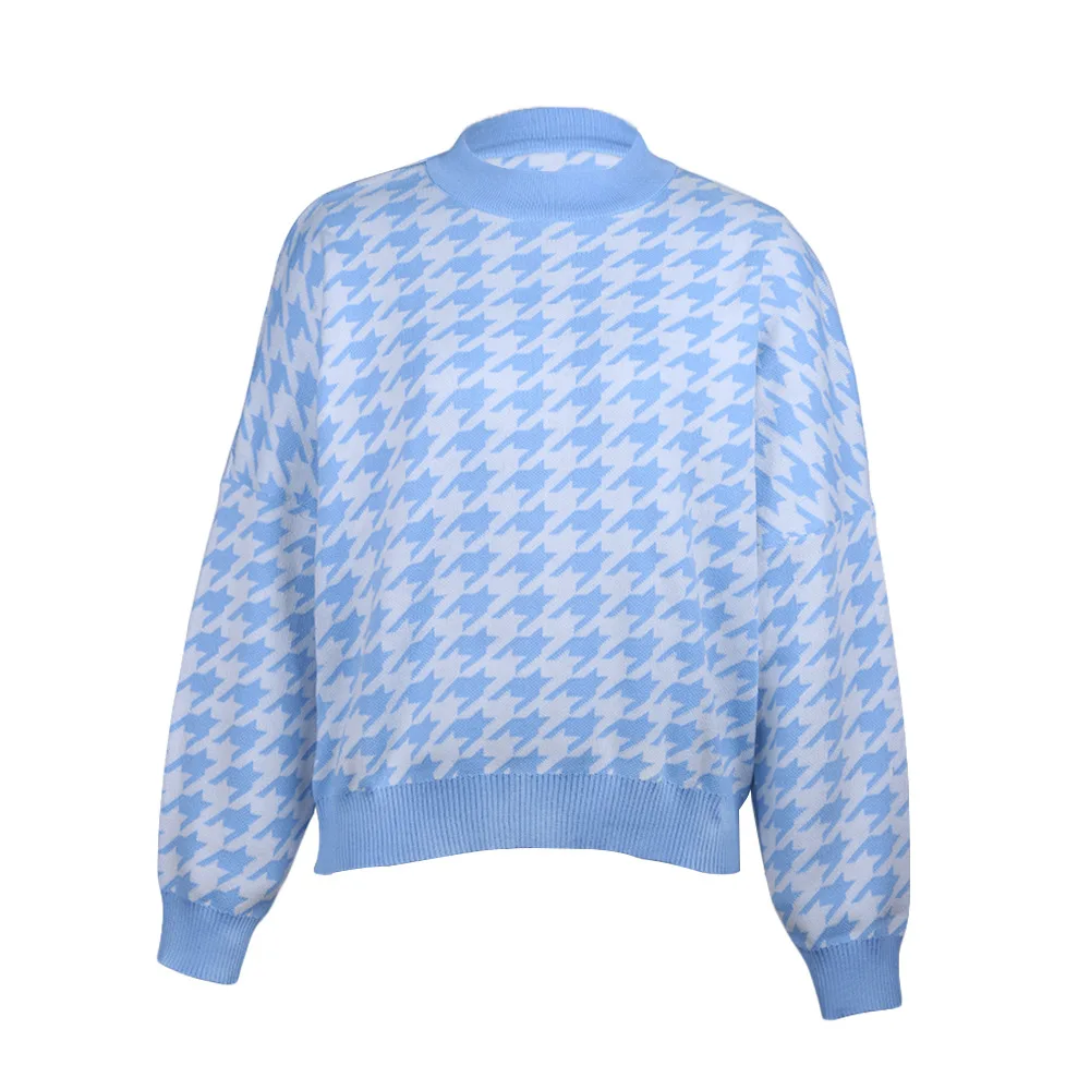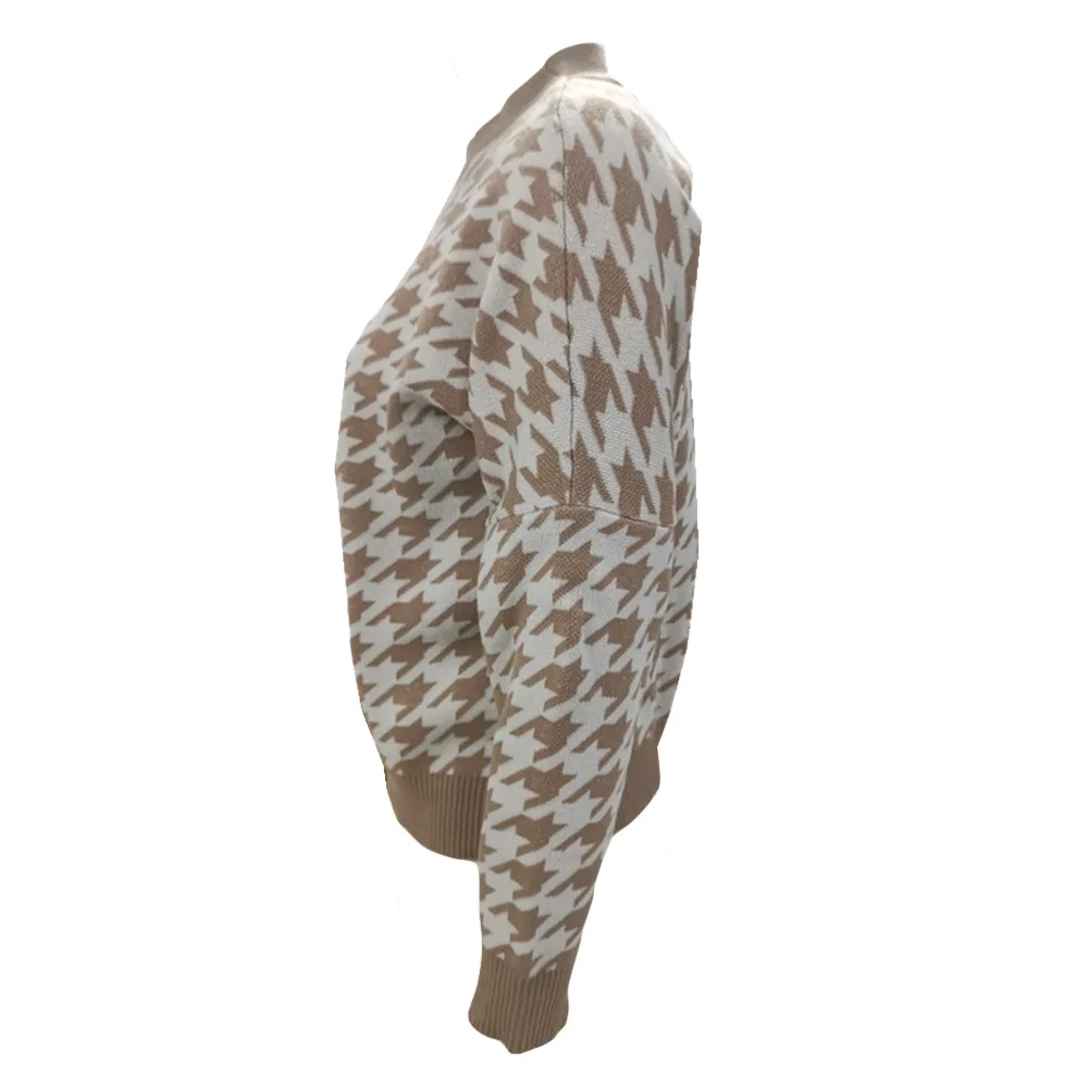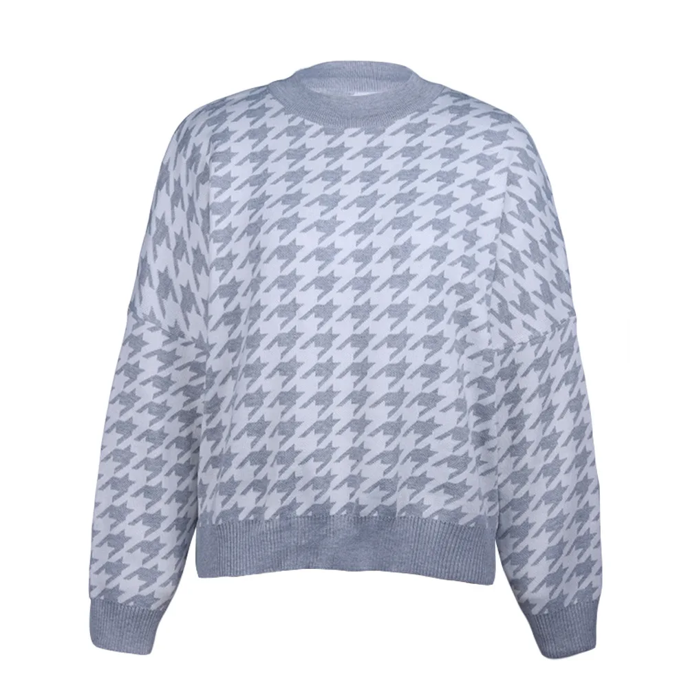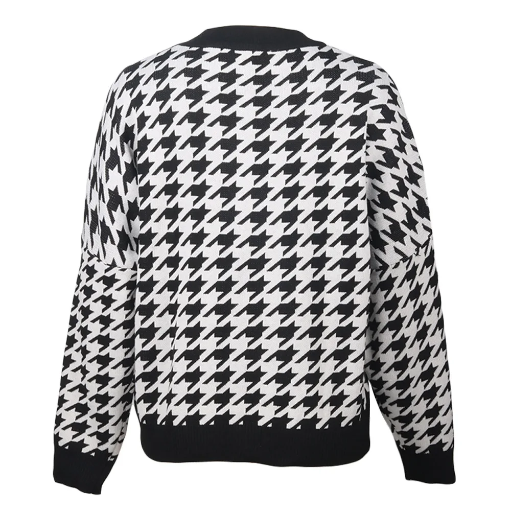 Женский вязаный свитер Atumn, с рисунком гусиная лапка, с длинным рукавом, свободный винтажный пуловер, 2021