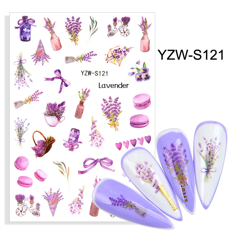 Наклейки для дизайна ногтей, слайдеры, украшения сделай сам, бабочки, лаванды, наклейки, 3D клейкий лист авокадо, фольга, маникюрные наклейки