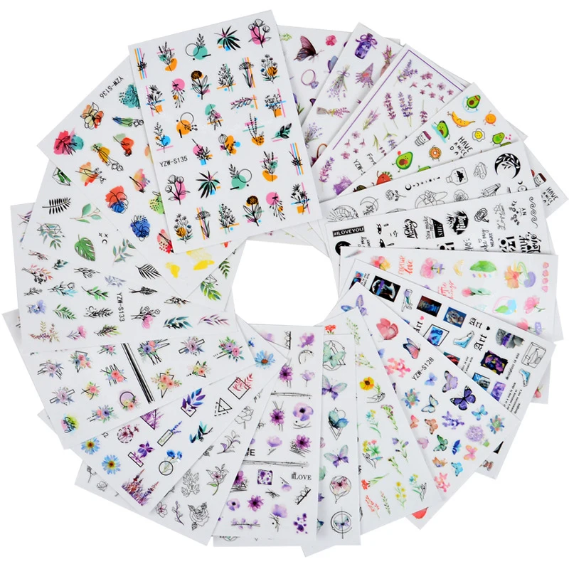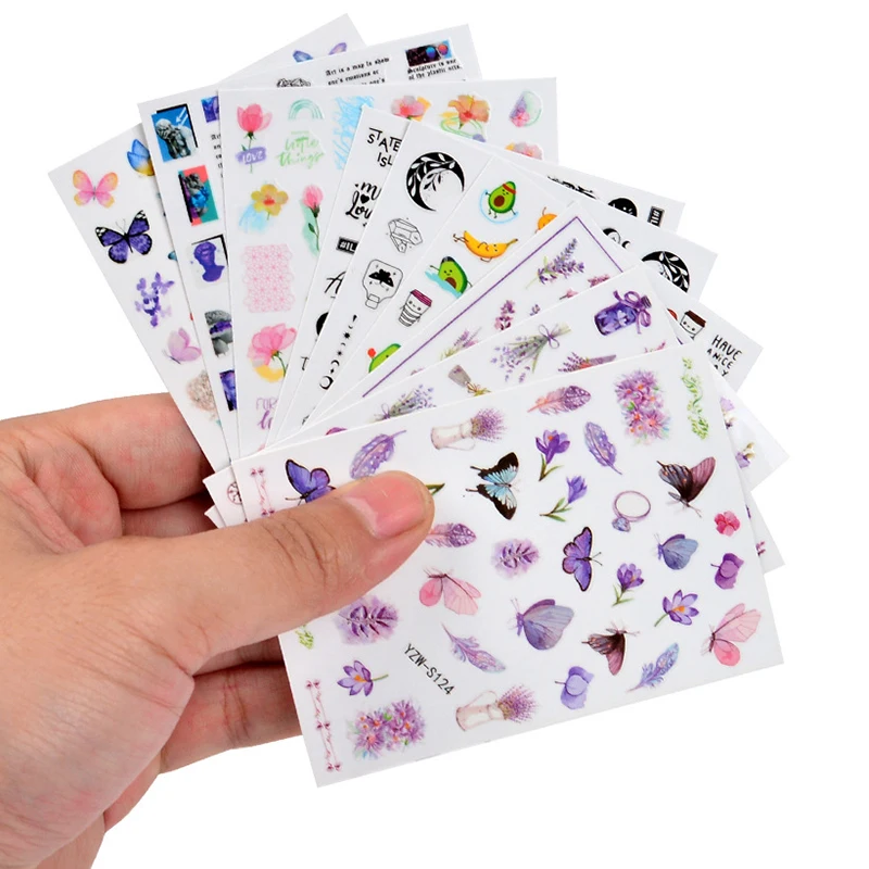 Лавандовые наклейки для ногтей с животными, бабочками, татуировками...