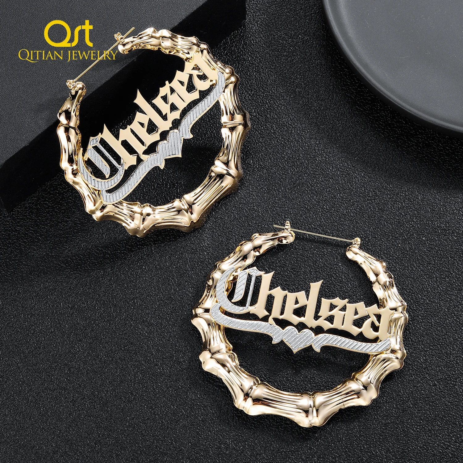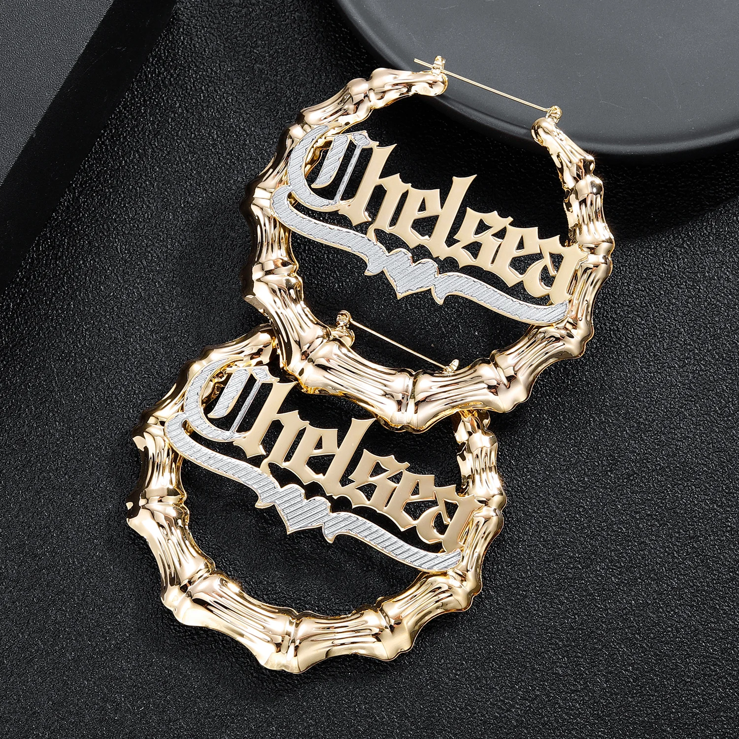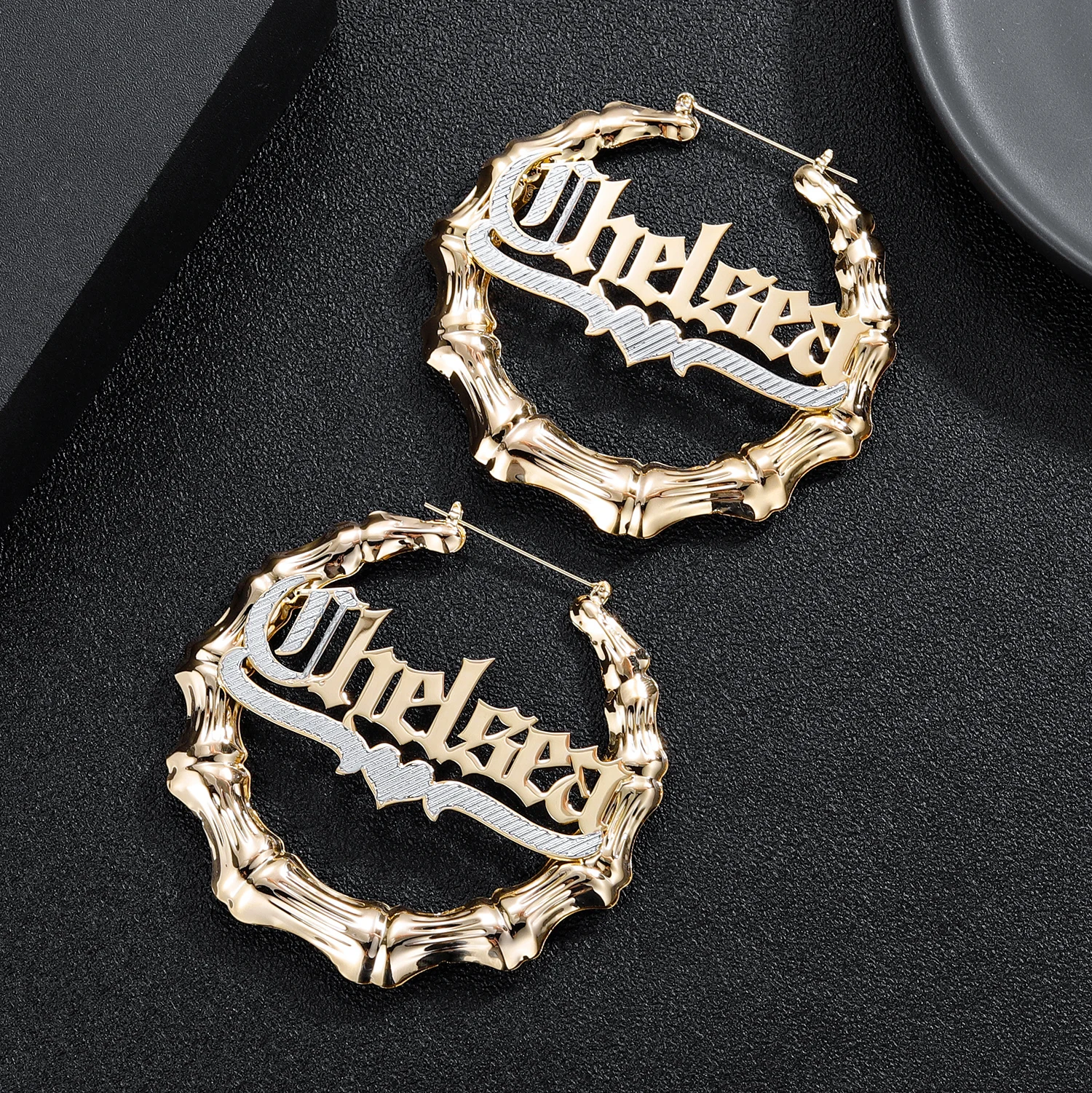 Бамбуковые серьги с именем, двухцветные позолоченные серьги из нержавеющей стали, индивидуальное название, обруч, серьги для женщин, сексуальное название, ювелирные изделия, подарок