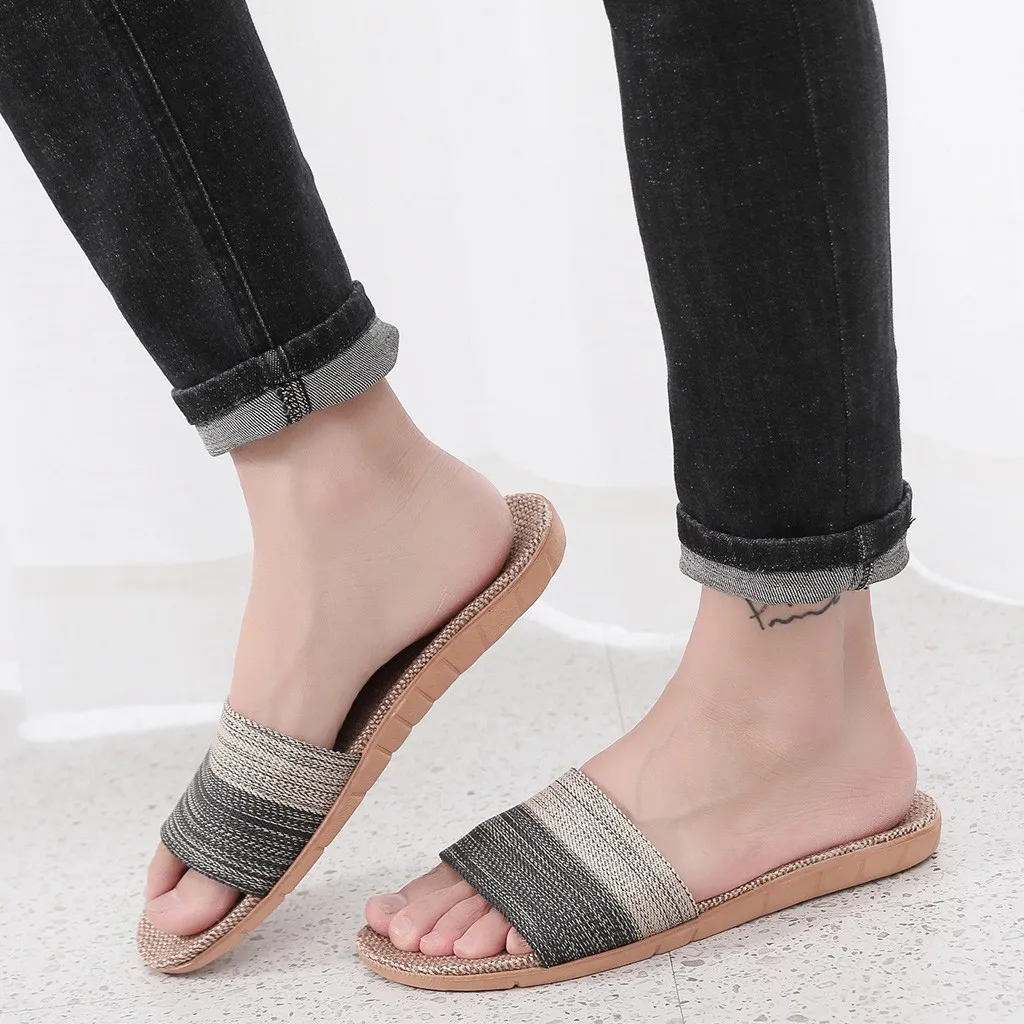 Мужские шлепанцы, хлопок и лен, Пляжная дышащая обувь, сандалии, домашние тапочки, шлепанцы