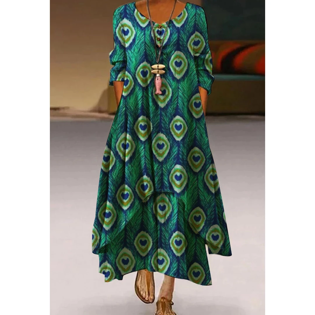 Длинные Платья-макси с принтом павлина, женское модное вечернее пла...